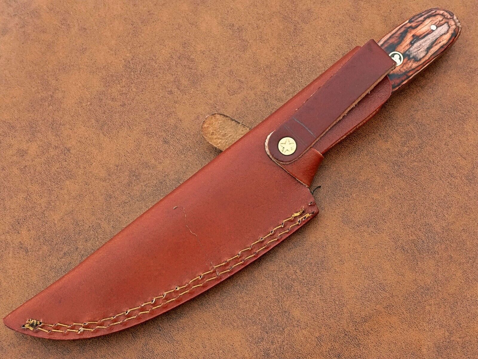 This Custom Handmade Forged Damascus Steel Chef Knife is a premium kitchen tool, meticulously handcrafted for chefs, collectors, and gift-givers alike. Made from high-quality Damascus steel, the knife features a 6.5-inch blade with a Rockwell hardness of 55-60 HRC, ensuring a razor-sharp edge that lasts. The 5-inch multi-color Pakka wood handle with steel bolster offers a secure, comfortable grip and is reinforced with steel pins for added durability. Measuring 11.5 inches overall, this knife is perfect for professional chefs, home cooks, and as a personalized gift for weddings, anniversaries, birthdays, or holidays. Each knife is a unique piece, combining functionality, beauty, and craftsmanship, making it an honored choice for culinary masters and loved ones.