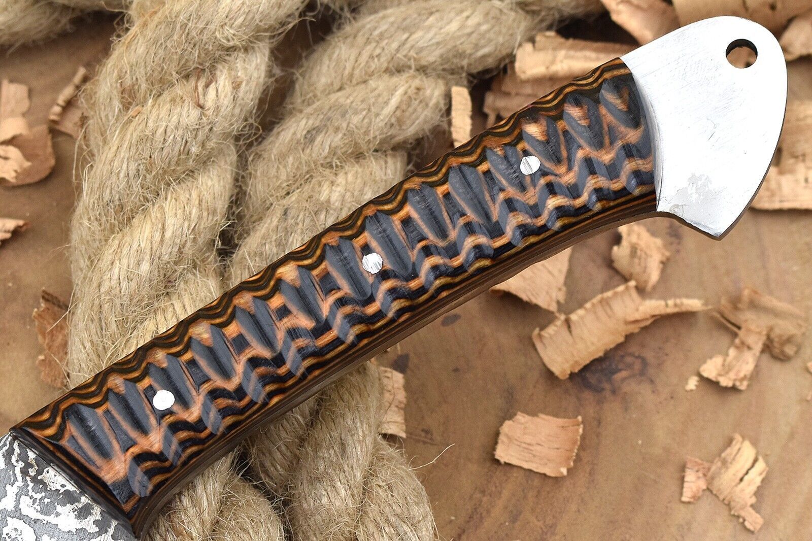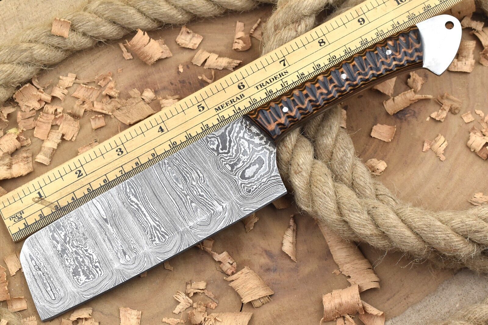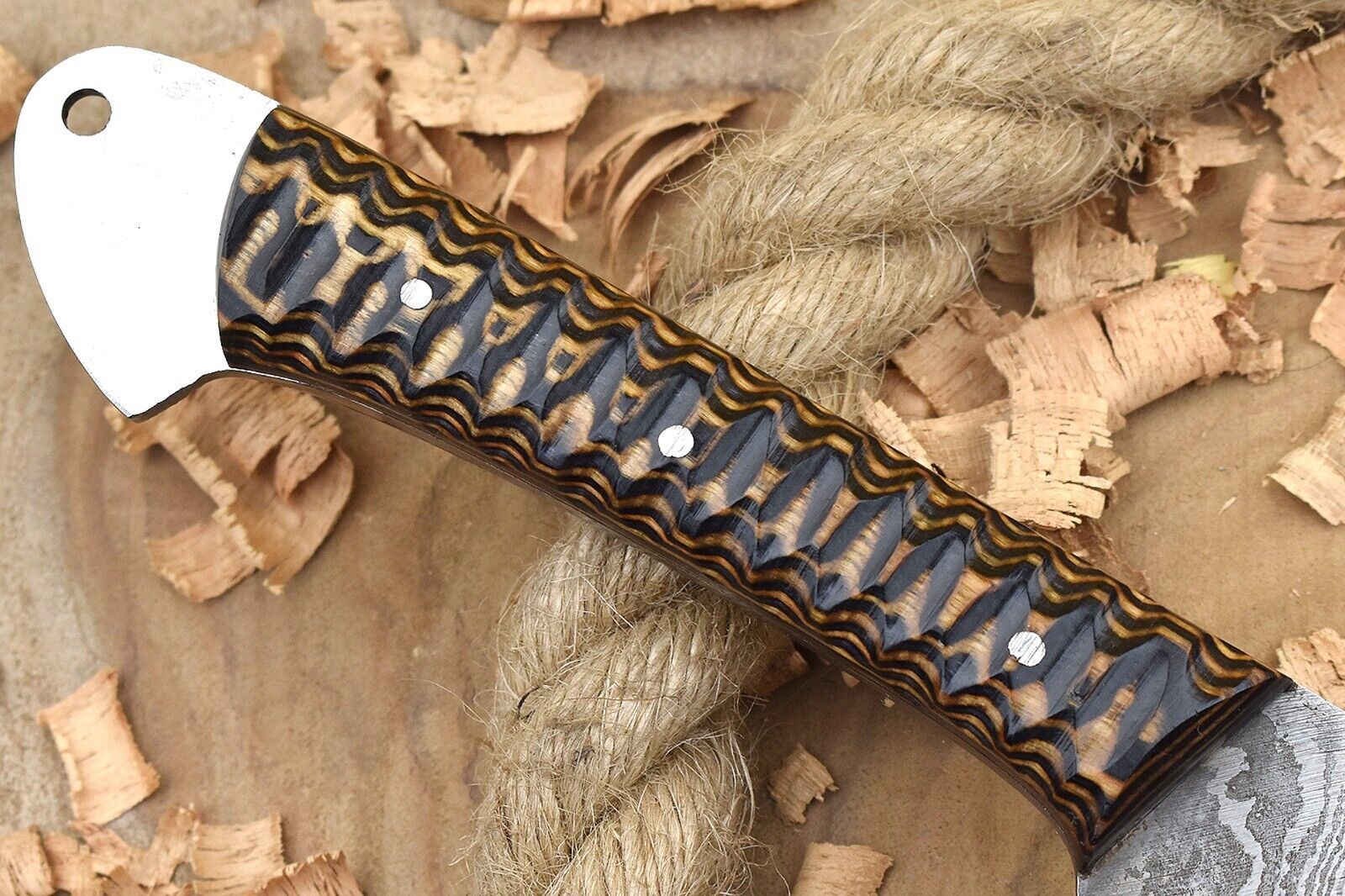 Crafted with 512 layers of Damascus steel, this knife ensures long-lasting sharpness, durability, and an eye-catching pattern. The black and brown cleaver-style handle with a Sturl open tang design provides a comfortable and secure grip for precise control.
