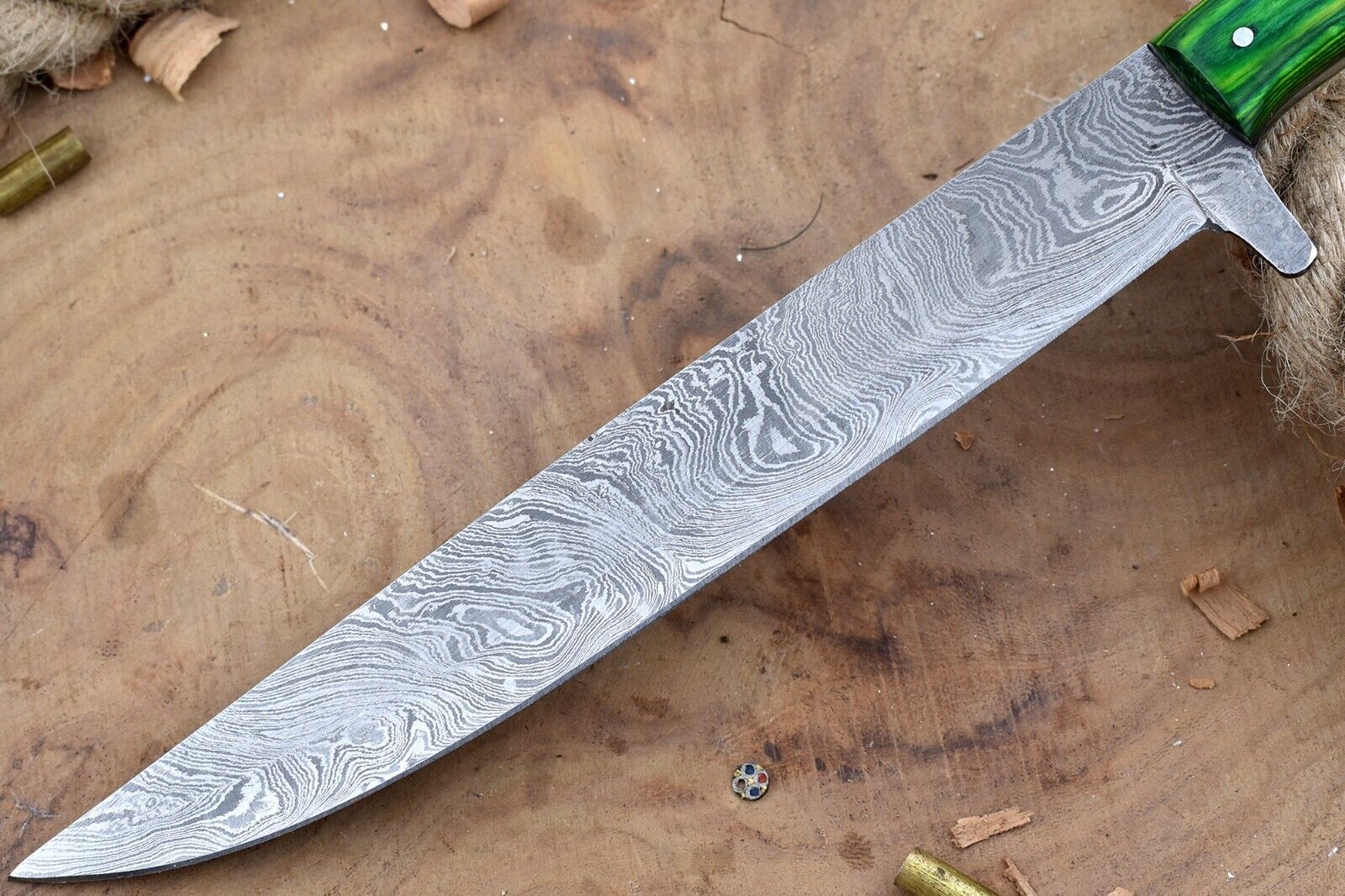 This custom handmade Damascus steel kitchen chef knife by Heritage Forge is crafted with precision, durability, and elegance in mind. Featuring an overall length of approximately 13 inches, it includes an 8-inch Damascus steel blade with a thickness of 2.5 mm and a 5-inch handle beautifully crafted from multi dollar sheet. The blade is hand forged to perfection, showcasing the traditional Damascus steel pattern created through layers of high-quality steel for exceptional strength and sharpness. Designed for both professional chefs and cooking enthusiasts, this knife offers excellent balance and a razor-sharp edge, making it ideal for slicing, chopping, and dicing with ease. Every Heritage Forge knife is 100% handmade, ensuring you receive a unique piece that combines functionality with striking aesthetics, making it a valuable addition to any kitchen or knife collection.
