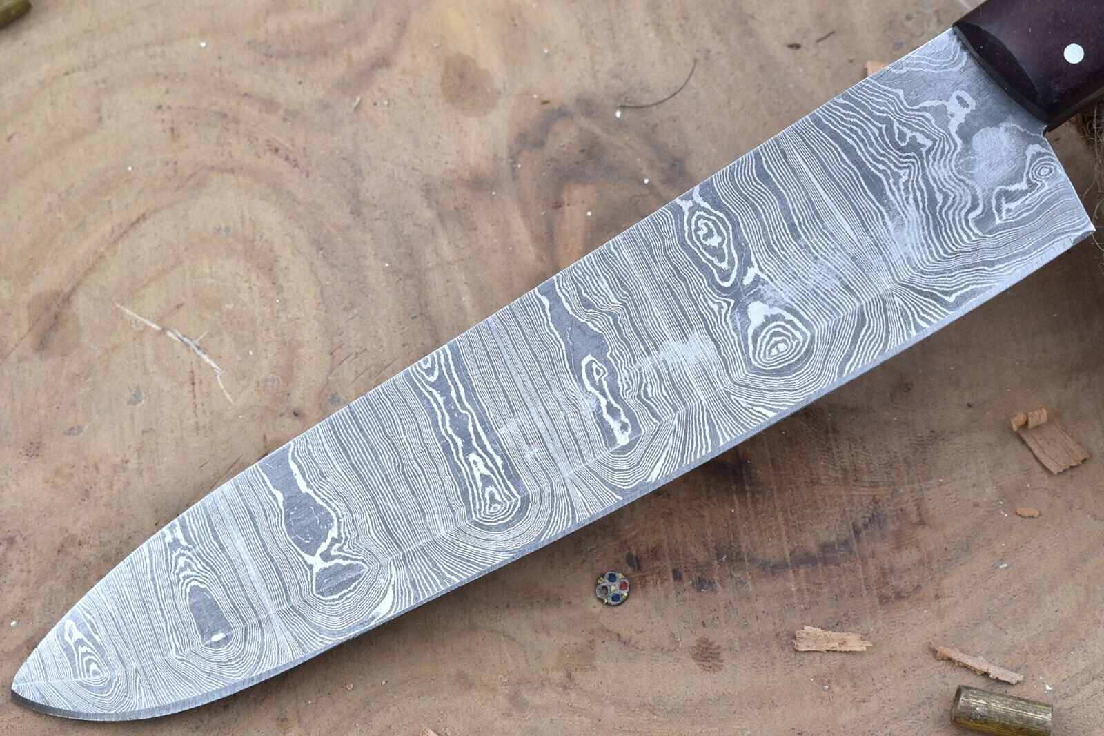 This custom handmade Damascus steel kitchen chef knife by Heritage Forge is a perfect blend of craftsmanship, durability, and elegance. With an overall length of approximately 12 inches, it features a 7-inch razor-sharp Damascus steel blade with a thickness of 2.5 mm and a beautifully designed 5-inch handle crafted from premium red dollar sheet and natural rose wood. Expertly hand forged, the blade showcases the signature Damascus pattern created from multiple layers of high-quality steel, ensuring outstanding strength, sharpness, and edge retention. Whether you are a professional chef or a passionate home cook, this knife delivers superior performance for slicing, chopping, and dicing. Every Heritage Forge knife is uniquely handcrafted, offering not only functionality but also a striking appearance, making it an exquisite addition to your kitchen or knife collection.