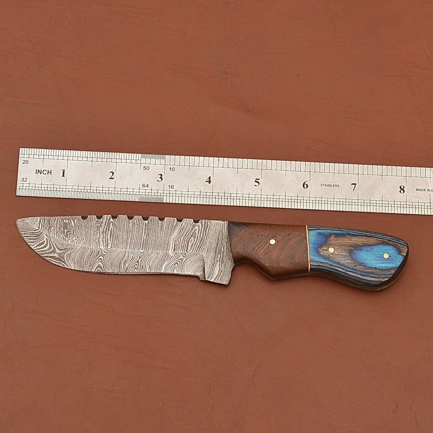 This custom handmade skinner knife is a reliable companion for hunting, camping, and survival. Crafted with precision, the 4-inch fixed blade is forged from high-quality Damascus steel (15N20), known for its exceptional edge retention, sharpness, and durability. The straight-edge blade design ensures clean, efficient cuts — ideal for skinning game or performing detailed camp tasks.