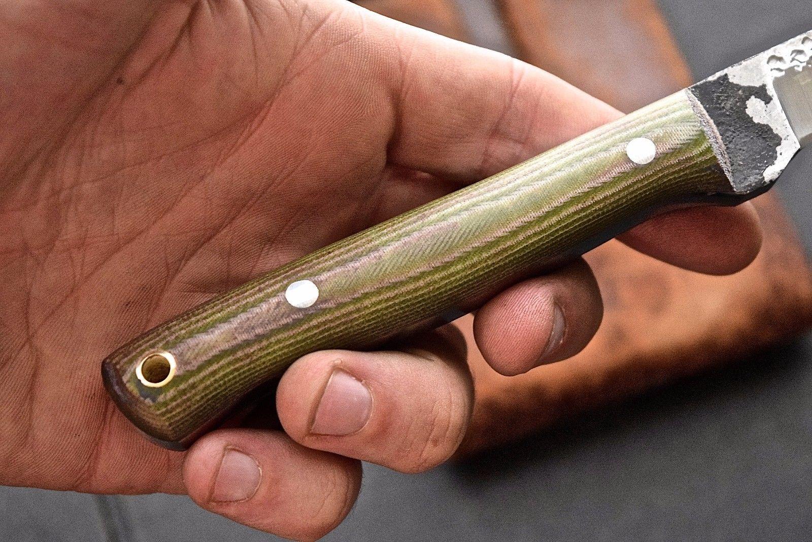 The micarta handle ensures a secure grip even in wet conditions, making it ideal for use as a fillet knife for fish or hunting tasks. Its ergonomic design makes it one of the most dependable handmade fillet knives for outdoor enthusiasts.