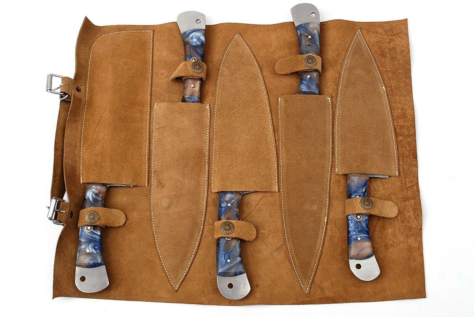 Custom Handmade Twist Damascus Steel Chef Knife Set