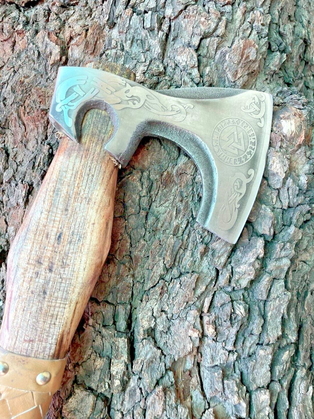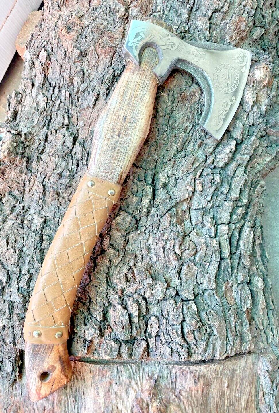 Custom Handmade Viking Axe – Bushcraft and Forest Hatchet with Leather Sheath