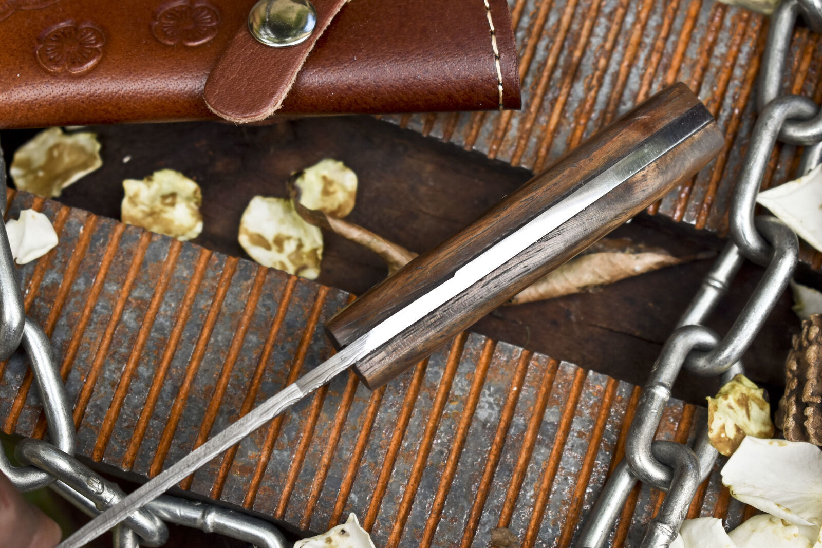 Discover the perfect combination of craftsmanship and functionality with this damascus skinner knife, handcrafted from premium Damascus steel blending 1095 and 15N20 layers. The 3.0-inch blade pairs perfectly with a 4.0-inch damascus deer horn skinner knife handle made of polished walnut wood, giving an overall length of 7.0 inches. Oil-tempered to 58-60 HRC, this damascus knife custom handmade fixed blade hunting knife skinner provides exceptional sharpness and durability, ideal for skinning, camping, hiking, and outdoor tasks. The ladder pattern in the Damascus steel features alternating bands forming a ladder-like effect with precise, polished rungs, creating a sophisticated, striking appearance that catches the light beautifully. Each knife is 100% handmade, ensuring a unique piece with subtle handcrafted characteristics. A premium hand-tooled leather sheath is included for safe storage and portability. Whether you are looking for a handmade skinner damascus knife, walnut damascus skinner knife, or fox-n-hound damascus dakota skinner stag handle knife, this ladder Damascus skinner knife is both a practical tool and a collectible piece, making it a perfect gift for camping and outdoor enthusiasts. Available now as a damascus skinner knife for sale.