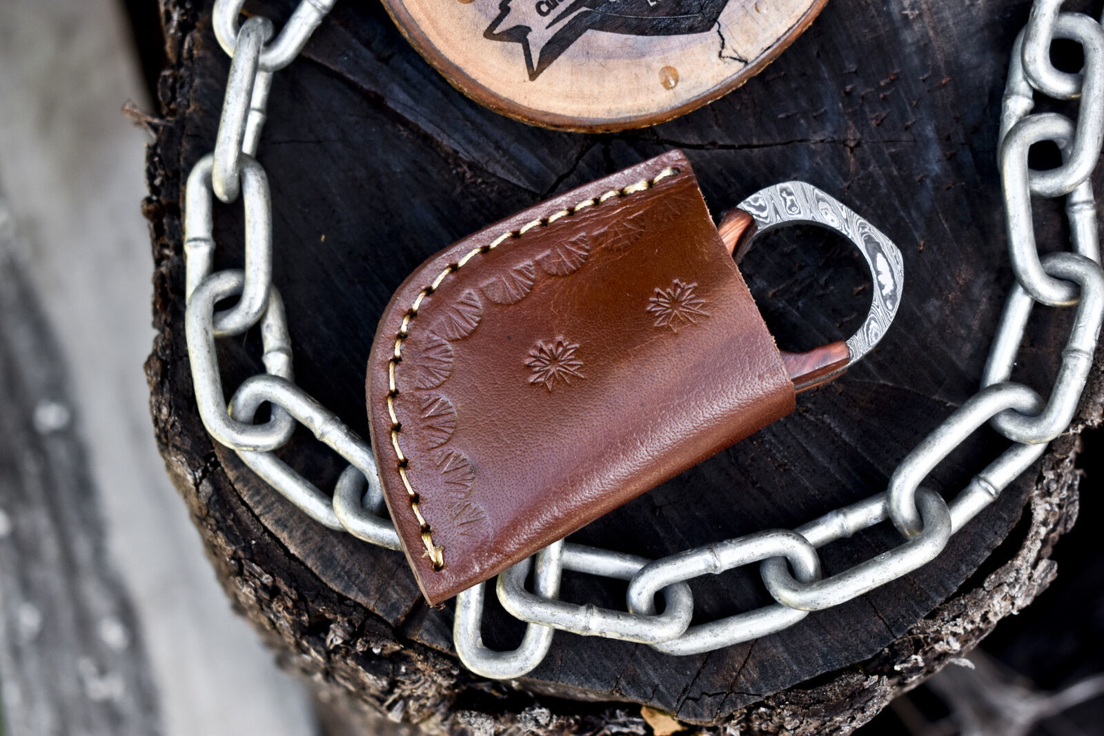 This Damascus Skinner Knife is a premium handcrafted tool built for hunters, skinners, and collectors who value performance and elegance. Featuring a compact 1.5-inch ladder-pattern Damascus steel blade, created from a blend of 1095 and 15N20 steel, it offers exceptional sharpness, edge retention, and durability. Each blade undergoes an acid etching process, revealing a striking ladder design that enhances its visual appeal. Oil tempered to 58–60 HRC, this damascus acid etched fixed skinner knife delivers both strength and precision for skinning and field tasks. The handle, crafted from polished hardwood, provides a comfortable, secure grip, making it ideal for prolonged use in outdoor settings. As a damascus knife custom handmade fixed blade hunting knife skinner, it’s not only functional but also a collector’s gem. Accompanied by a hand-tooled, heavy-duty leather sheath, this damascus skinner hunting knife ensures safe storage and easy carry. Every knife is individually handmade in Pakistan, ensuring that no two pieces are exactly alike. Compact yet powerful, this handmade skinner damascus knife is perfect for those who need a portable and reliable hunting companion that also stands out for its craftsmanship and style.