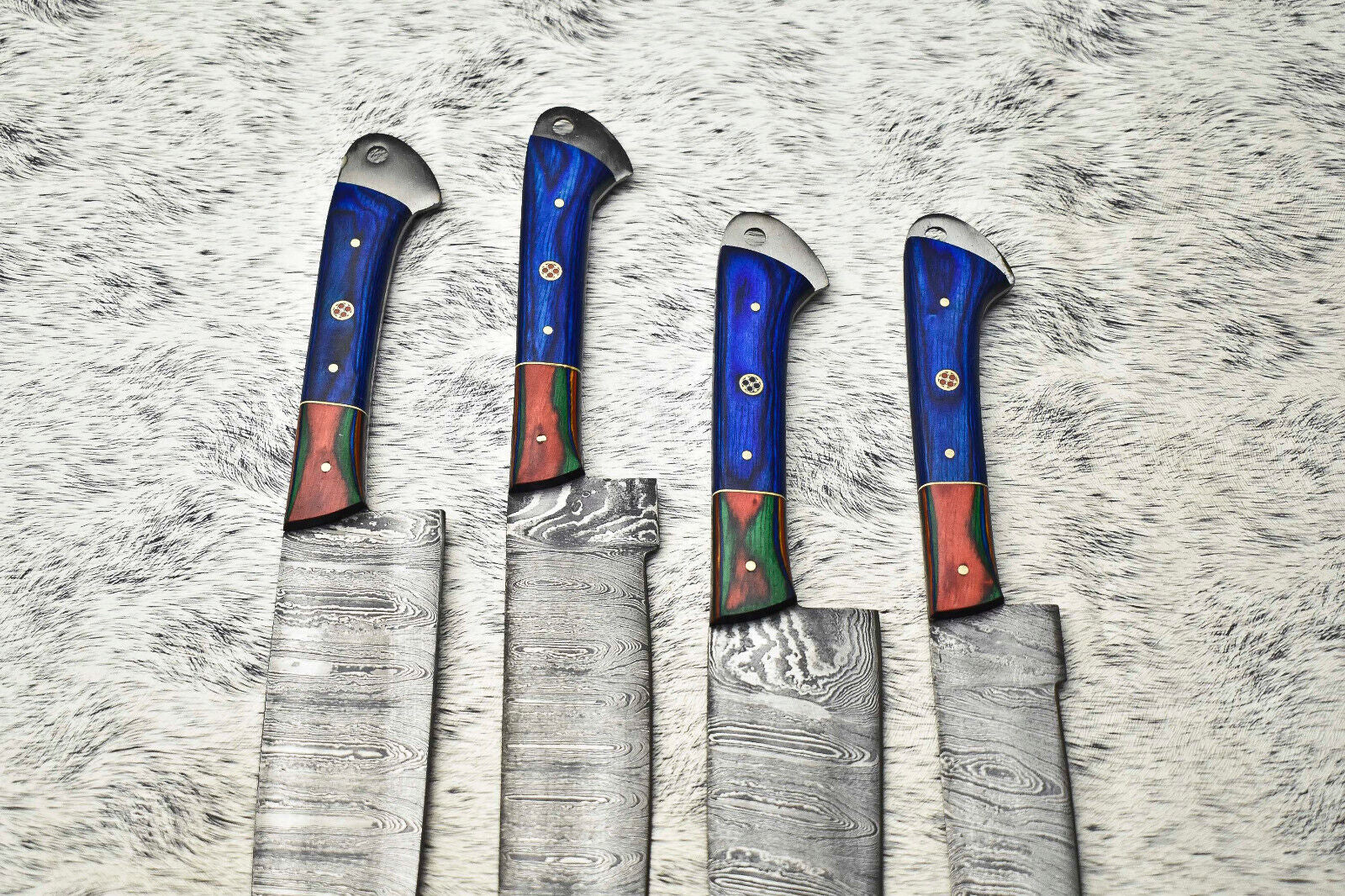 Custom Lot of 4 Handmade Hammered Damascus Steel Blade Chef Set Knife
