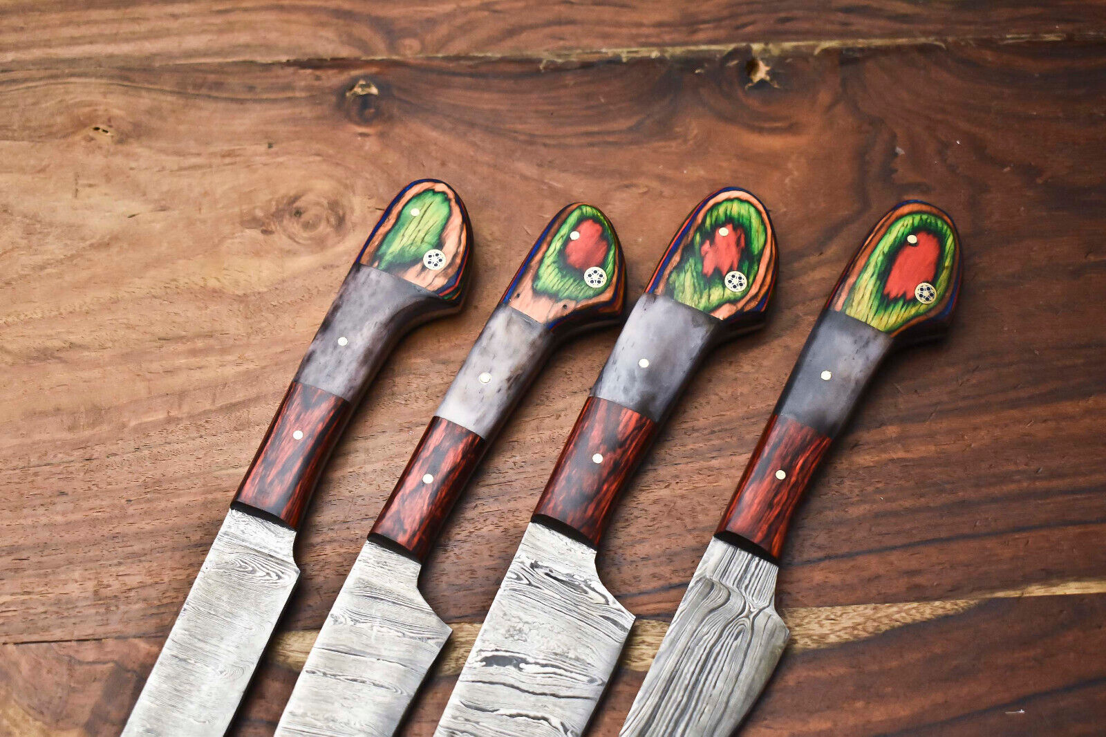 Custom Lot of 4 Handmade Hammered Damascus Steel Blade Chef Set Knives