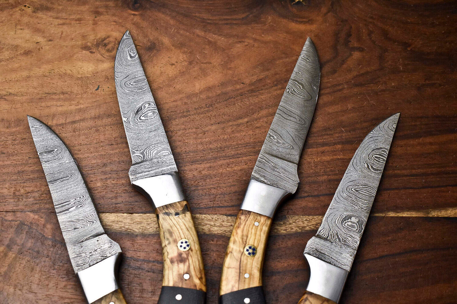 Custom Lot of 4 Handmade Hammered Damascus Steel Chef Knife Set