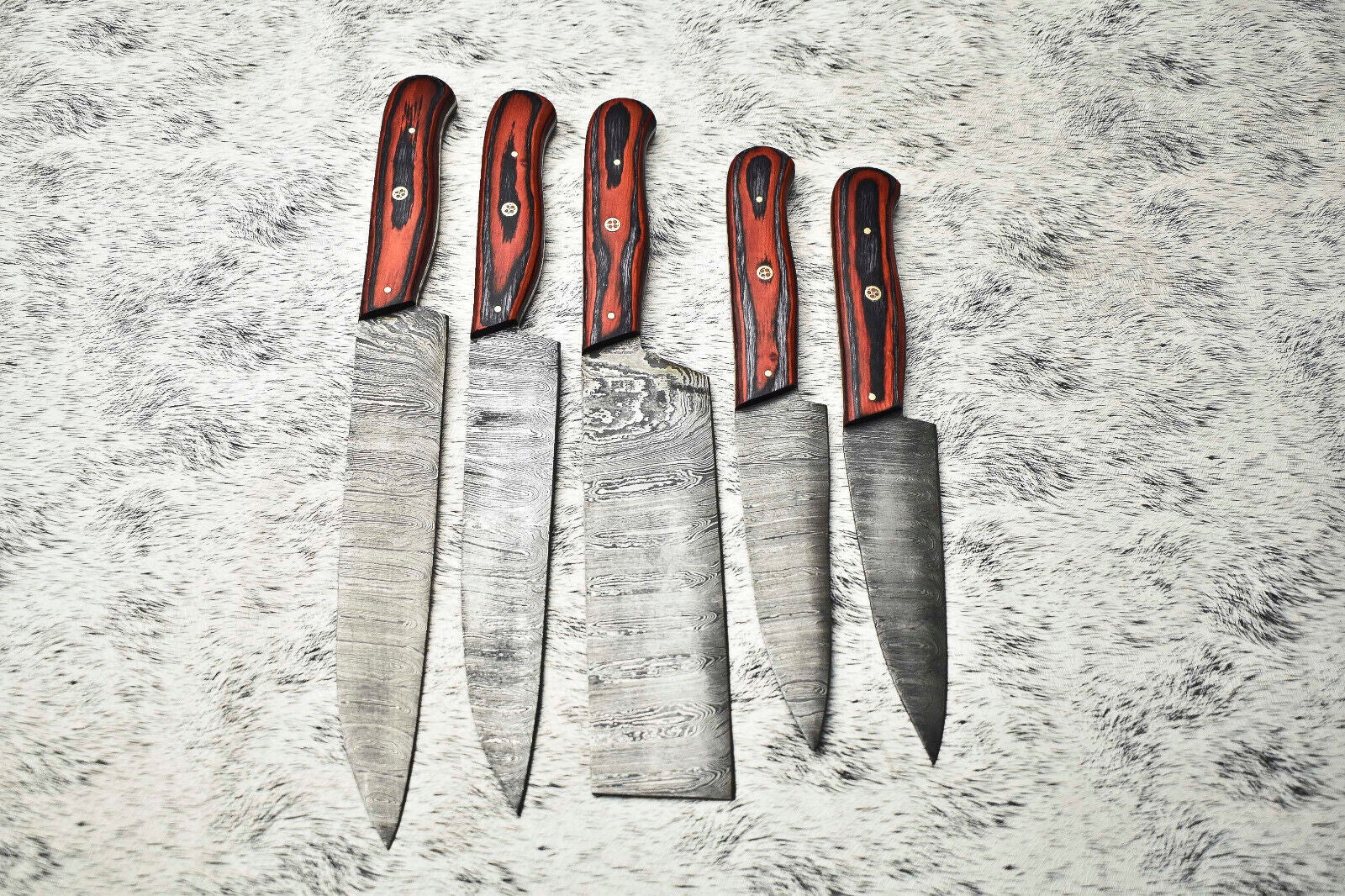 Custom Lot of 5 Handmade Damascus Steel Chef Knives | Full Tang Hard Wood Handles