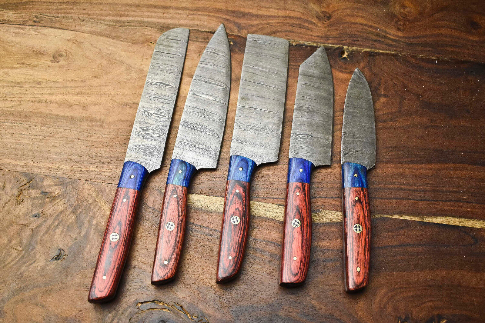 Custom Lot of 5 Handmade Hammered Damascus Steel Blade Chef Set Knives