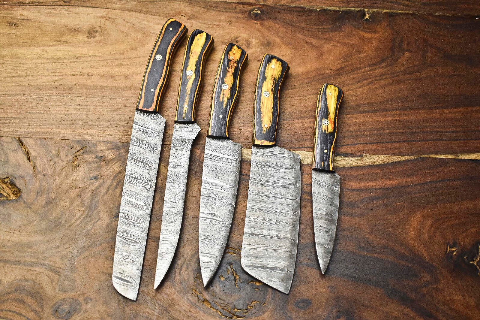 Custom Lot of 5 Handmade Hammered Damascus Steel Chef Knives