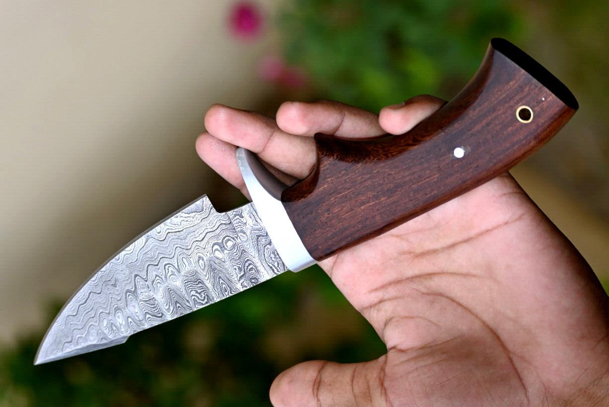 This Custom Made Damascus Tracker Hunting Knife is a premium, hand-forged tool built for hunters, campers, survivalists, and collectors. Crafted with exceptional skill, the blade is made of 512 layers of 4340 stainless steel and 1075 high carbon steel, oil tempered to a hardness of 55–58 HRC. The beautiful twist pattern Damascus design not only provides incredible strength and durability but also gives this knife its striking and unique appearance.The knife measures 9 inches overall, with a 5-inch razor-sharp blade and a 4-inch ergonomic handle made of wood and camel bone, ensuring comfort, control, and a secure grip during extended use. Its full tang construction adds to its strength, making it a reliable tool for hunting, bushcraft, camping, hiking, and survival situations.This knife comes with a hand-stitched genuine leather sheath, providing both protection and convenience for carrying in the outdoors. Whether you are a collector looking for a standout Damascus piece or an adventurer seeking a dependable blade, this handmade tracker knife is the perfect choice.