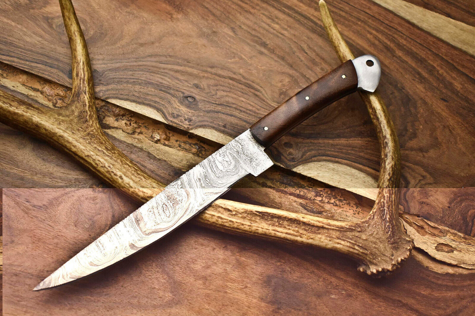 This Custom San Mai Damascus Steel Fixed Blade Chef Knife is a perfect blend of beauty, durability, and performance. Expertly handcrafted, it features a razor-sharp Damascus steel blade that offers exceptional edge retention and precision cutting, making it ideal for professional chefs and home cooking enthusiasts alike. The stunning handle is crafted from premium walnut wood and resin, providing both a comfortable grip and an elegant aesthetic. With its unique patterns and artisanal craftsmanship, this knife is not only a highly functional kitchen tool but also a collector’s piece. Designed for long-lasting use, it ensures balance, control, and efficiency in every cut, slice, or chop.