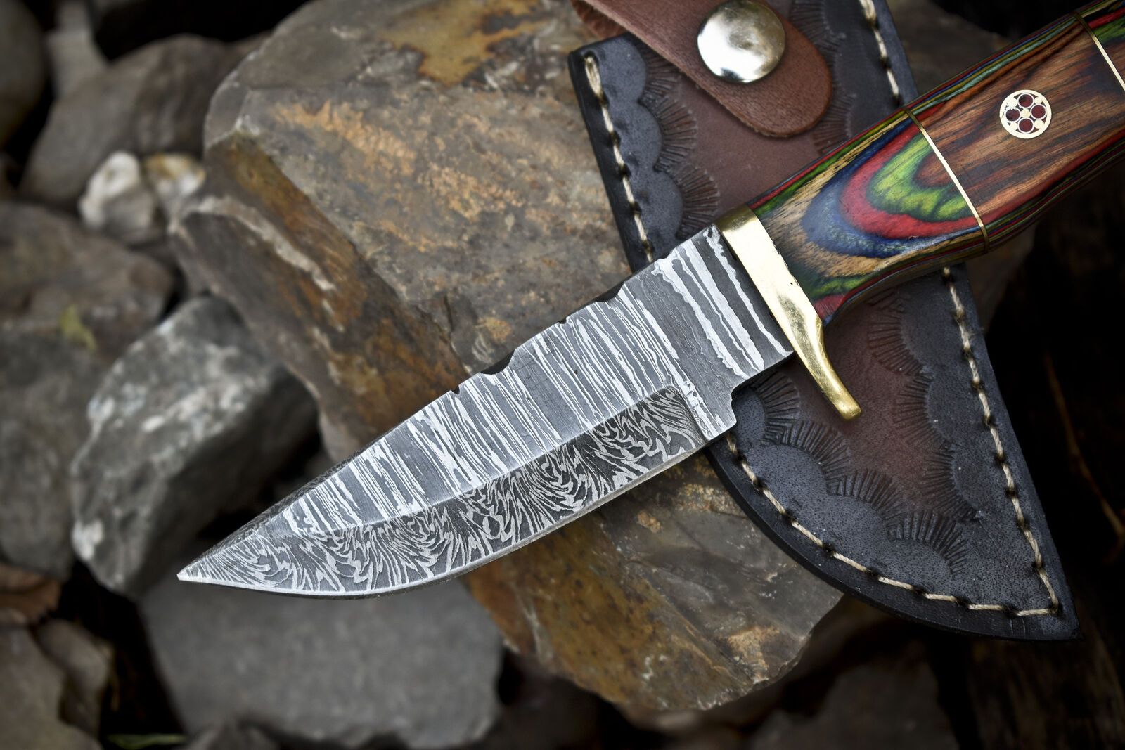This handmade skinner damascus knife includes a hand-tooled leather sheath, adding both style and protection. Whether you’re a hunter, collector, or outdoor enthusiast, this blade is a reliable tool and a stunning example of craftsmanship. As a damascus knife custom handmade fixed blade hunting knife skinner, it excels in both form and function. Don't miss this rare opportunity to own a premium damascus skinner knife for sale that blends art and utility.