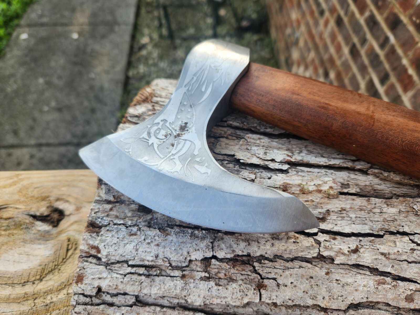 Cutlery Carbon Steel Viking Axe with Wooden Handle – Handmade Knife Axe