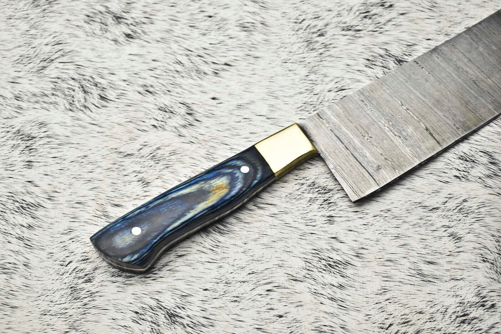 Introducing the Cutlery Salvation Handmade Damascus Steel Full Tang Chef Knife, a masterpiece of craftsmanship and functionality. This 11-inch overall length knife is forged from authentic Damascus steel, composed of 1095HC and 15N20 nickel carbon steel folded 384 times to create striking layered patterns. Oil-tempered to 58-60 HRC, it features razor-sharp edges sharpened at 20 degrees for precision cutting. Our blades are acid-etched to beautifully expose the unique layers — nickel turns satin and the high carbon steel shows a blackish gray finish. The handle is hand-polished, buffing off acid layers to provide a smooth, comfortable grip. Unlike mass-produced knives, each piece is 100% handmade without CNC machining, ensuring every knife is unique with handcrafted details. Ideal for professional chefs and culinary enthusiasts who appreciate true artisan quality.