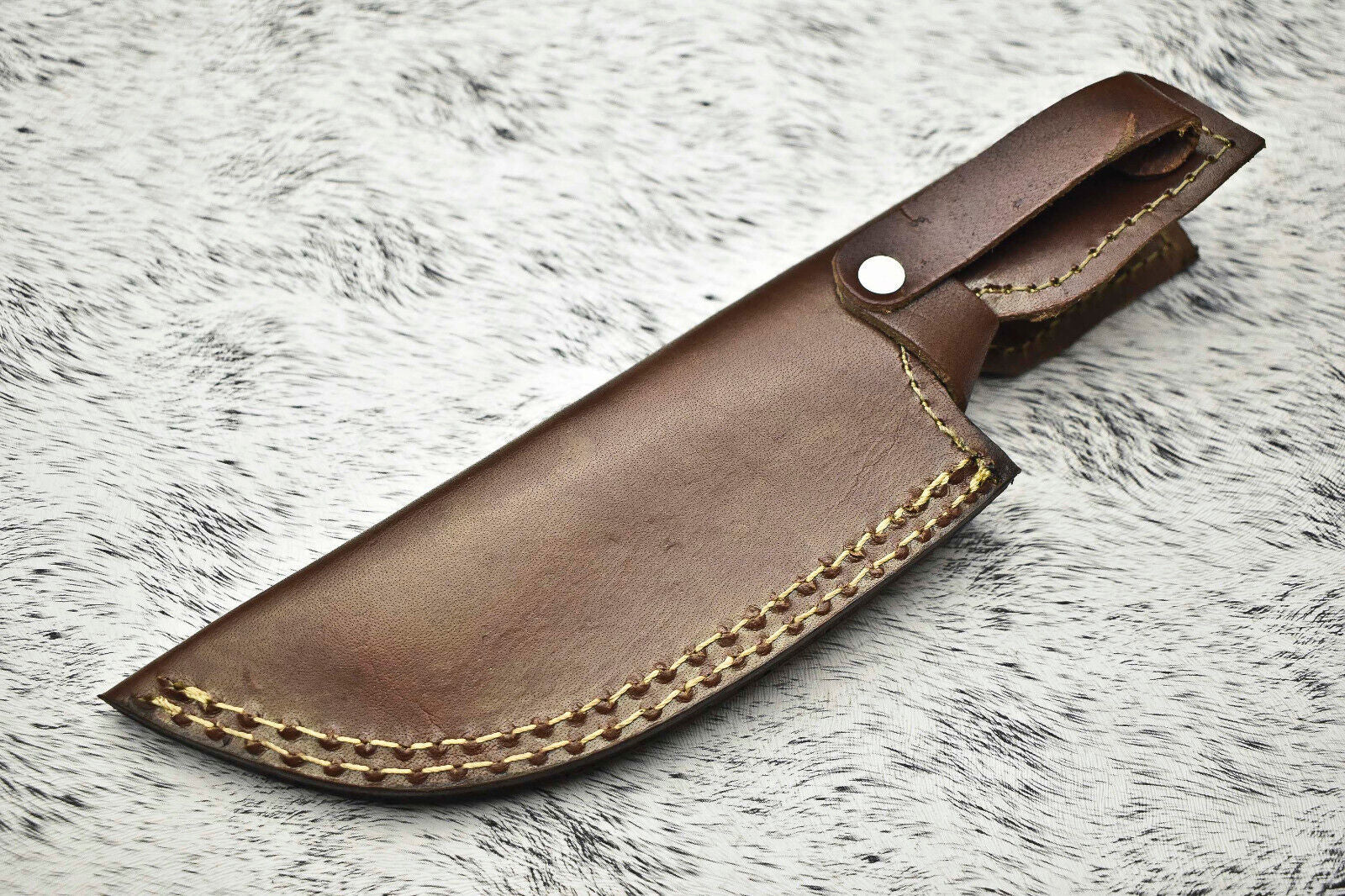 This rare handmade Damascus camping tracker knife is a true work of craftsmanship and strength. Forged from a premium blend of 1095 high carbon steel and 15N20 nickel steel, the blade features 384 folded layers, creating the signature Damascus wave pattern. Through acid etching, the nickel takes on a satin finish while the high carbon turns deep gray, exposing the intricate layered design.Each blade is hand-polished and sharpened, ensuring excellent edge retention, sharpness, and cutting power. The full tang construction provides maximum strength, balance, and durability for demanding outdoor use. Ideal for camping, hunting, bushcraft, survival, and rescue tasks, this tracker knife is designed to perform heavy-duty chopping, carving, splitting, and skinning with ease.