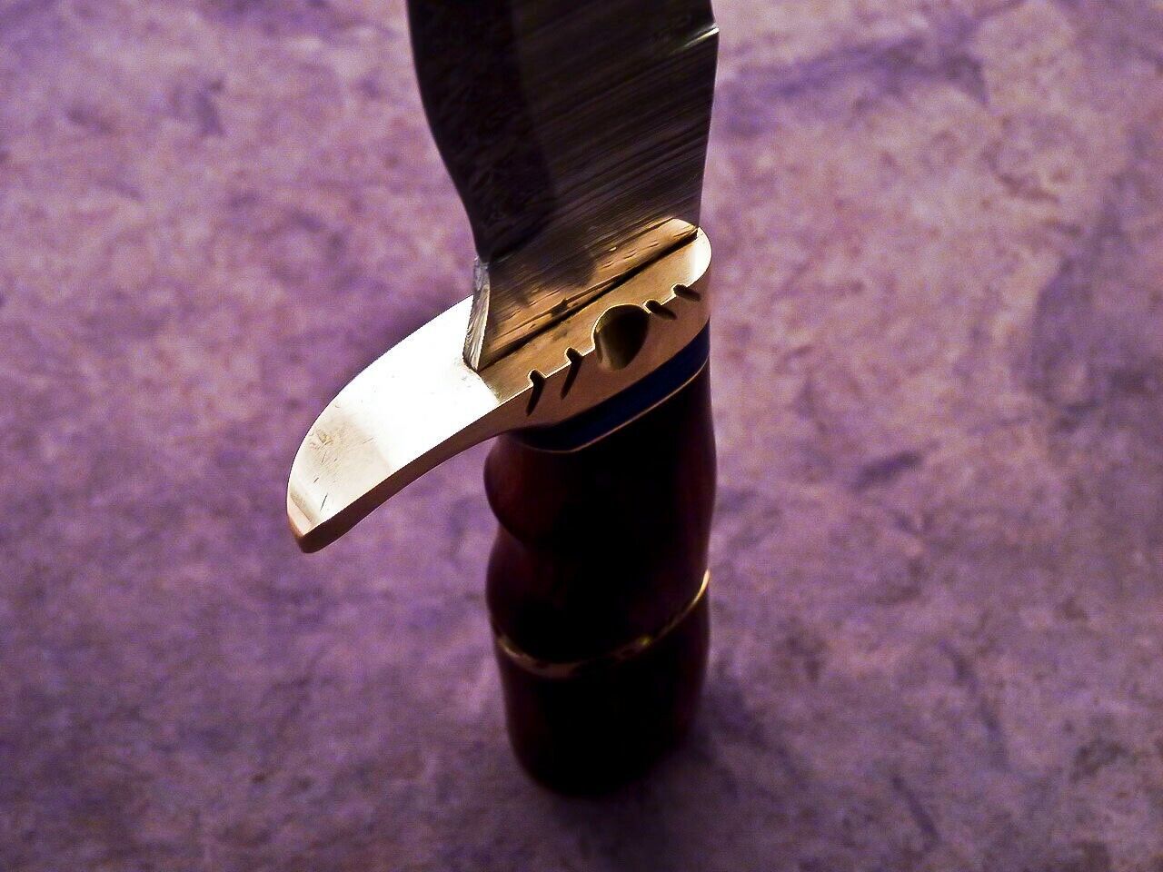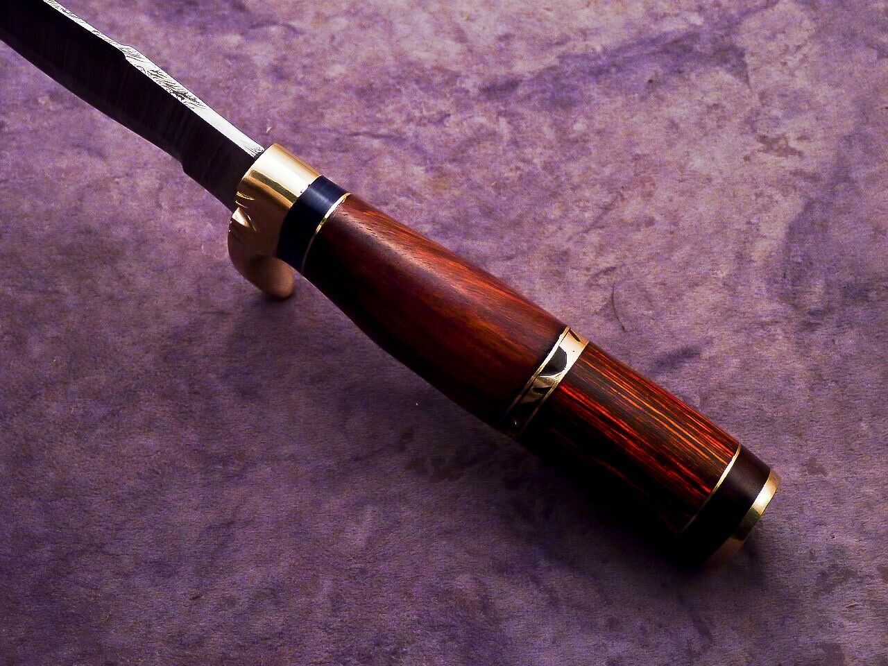 The handle is crafted from natural wood and reinforced with a solid brass bolster, offering excellent grip, balance, and style. Every detail of this hunting knife reflects hand-forged quality, making it a perfect choice for camping, fishing, and survival scenarios. This fixed blade knife is not just a tool—it's a display-worthy piece of outdoor craftsmanship.