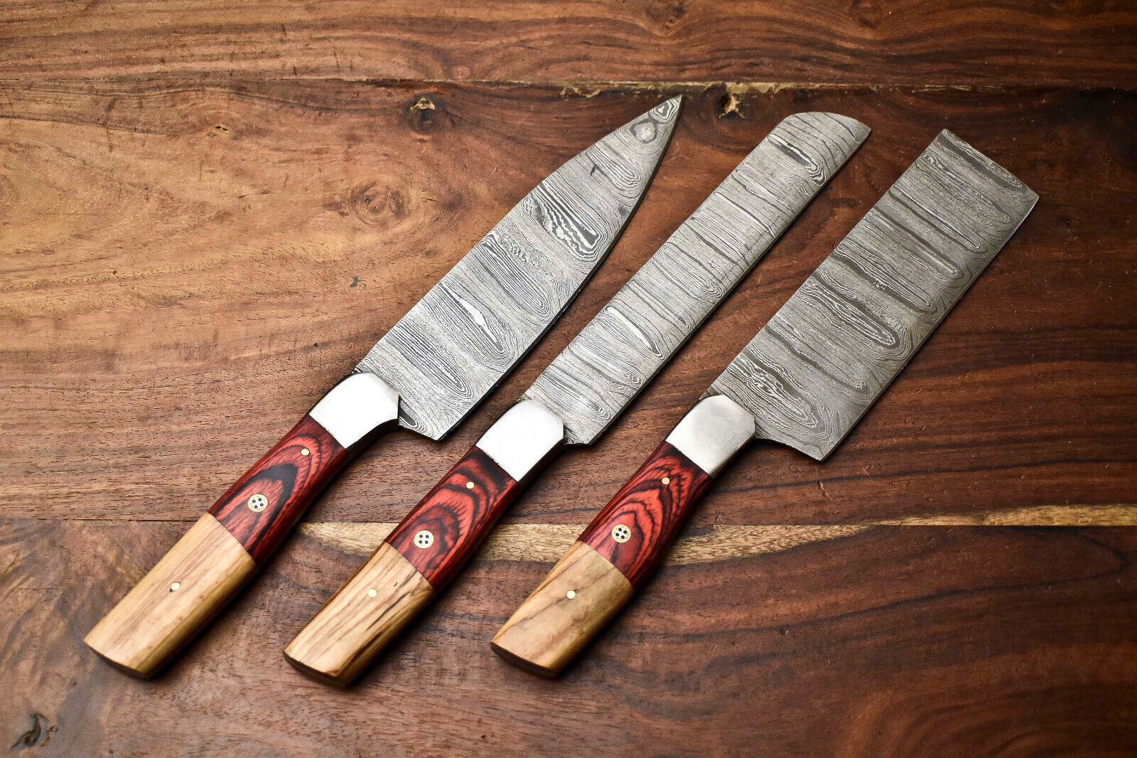 Exclusive Custom Handmade 3-Piece Damascus Steel Chef Knife Set with 384 Layers