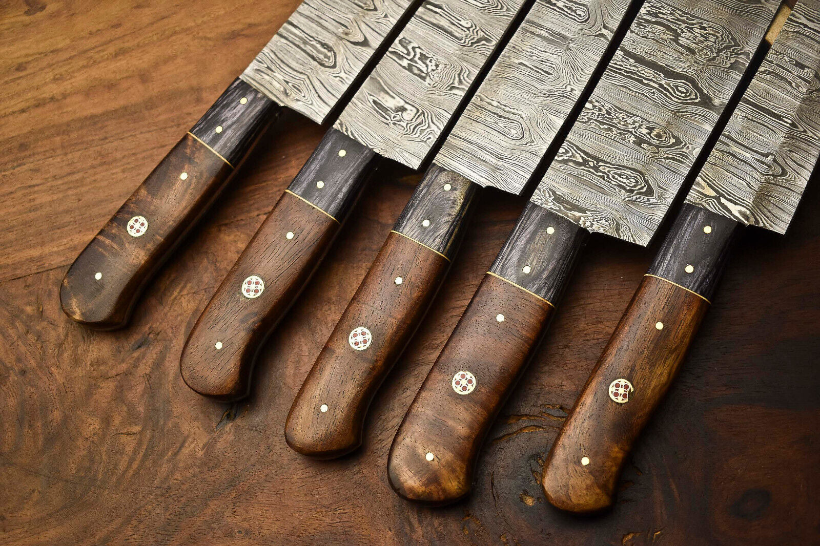 Exclusive Custom Set of 5 Handmade Hammered Damascus Steel Chef Knives – 10" to 13"