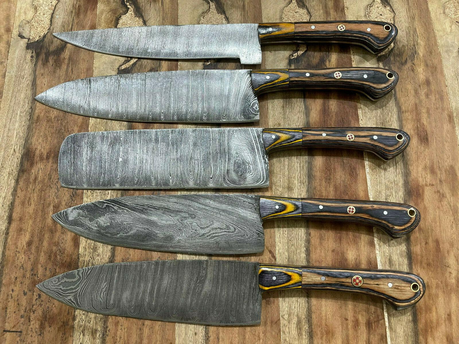 Exquisite 5-Piece Handmade Damascus Steel Chef Knife Set – Custom Kitchen Collection