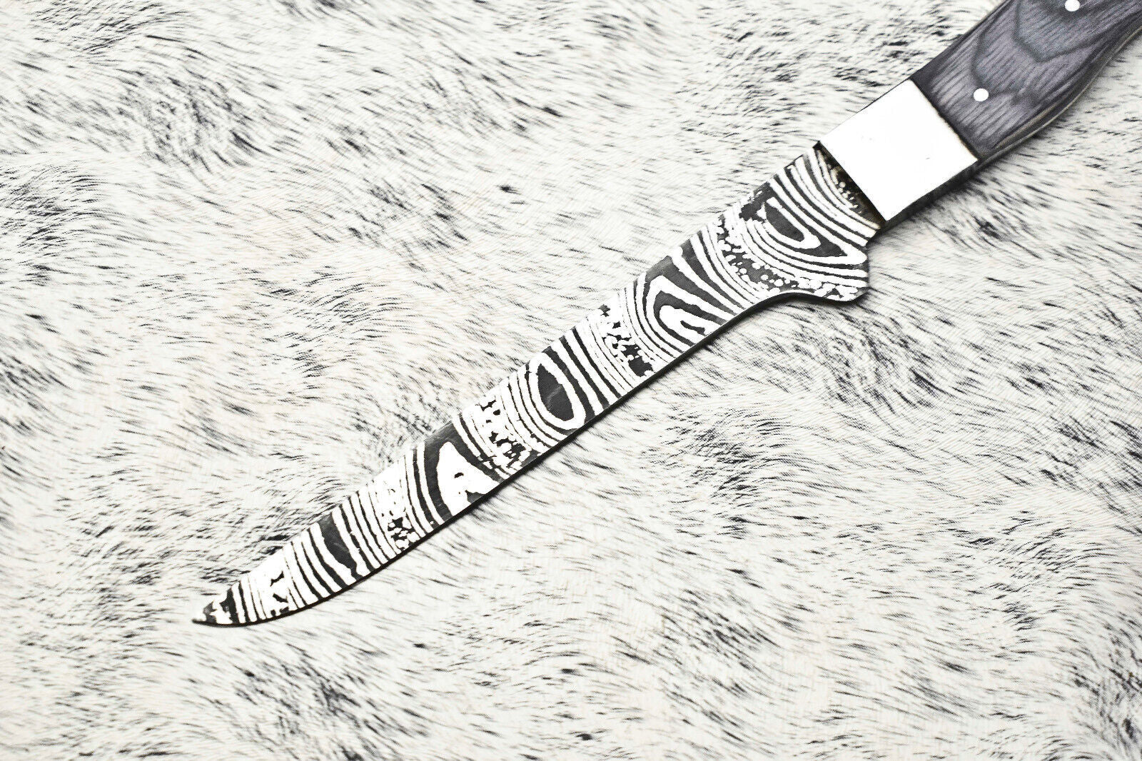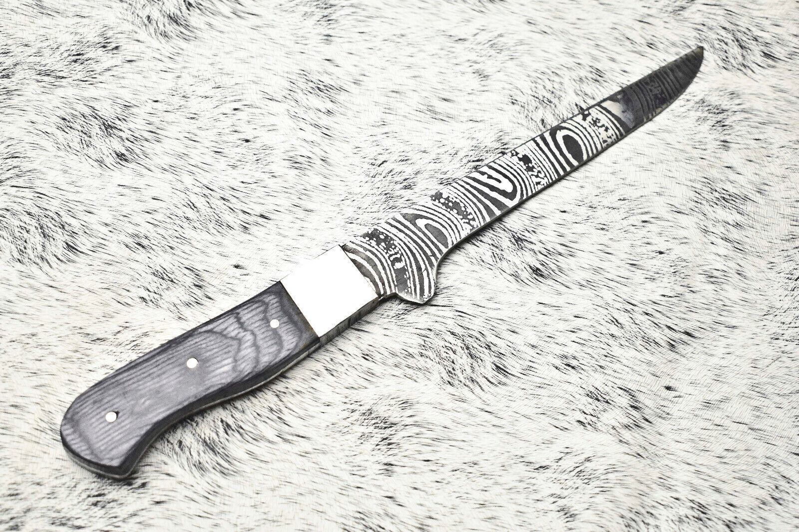 Experience the exceptional quality and craftsmanship of our Fine Custom Handmade Damascus Steel Blade Chef Knife, designed with a full tang construction for unmatched strength and balance. This knife measures an overall length of 11.0 inches, featuring a 6.0-inch blade and a 5.0-inch handle. The blade is oil tempered to a hardness of 58–60 HRC, with edges sharpened at a precise 20-degree angle to ensure exceptional cutting performance. Our Damascus steel is genuine—not merely acid etched—crafted from a blend of 1095 high carbon steel and 15N20 nickel carbon. These metals are heated together and folded repeatedly to create 384 distinctive layers, producing the striking patterns Damascus is known for. The blade is then acid-etched, revealing the nickel in a satin hue and the high carbon in a blackish-gray tone, showcasing the intricate steel layers. After crafting, the handle is high-polished, and the blade edge is sharpened, giving it both beauty and function. Each knife comes with a premium cowhide leather sheath for safe storage and lasting protection. 100% handmade, this chef knife is not just a kitchen tool—it’s a piece of art built to perform and endure.