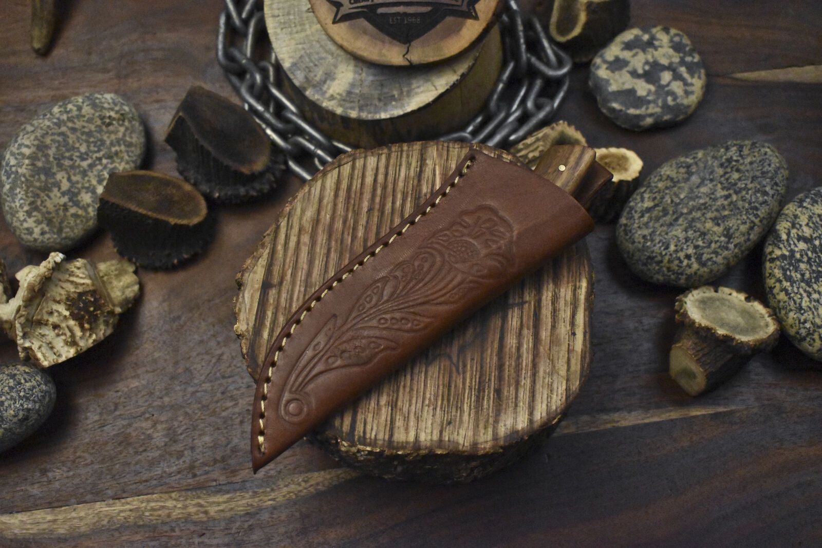 This forged Damascus skinner knife is a compact yet powerful tool built for precision and durability. With a blade length of 3.5 inches and an overall length of 7.0 inches, it’s ideal for skinning tasks where control and finesse are essential. The blade is forged from high carbon 1095 and 15N20 steels, twisted and acid-etched to create a mesmerizing pattern. This Damascus acid etched fixed skinner knife not only offers striking aesthetics but also excels in edge retention and toughness, tempered to 58–60 HRC for peak performance. The handle is a sturdy combination of polished bone and wood, shaped for a comfortable grip and reinforced with a durable micarta bolster. This knife exemplifies the craftsmanship of a handmade skinner Damascus knife, designed for field work, tactical use, or collection. Each blade is unique, revealing the natural flow and contrast of its layered steel. A custom leather sheath is included for safe transport and storage. Whether you're gifting it or putting it to work in the wild, this Damascus knife custom handmade fixed blade hunting knife skinner is an ideal companion for hunters and outdoor enthusiasts.