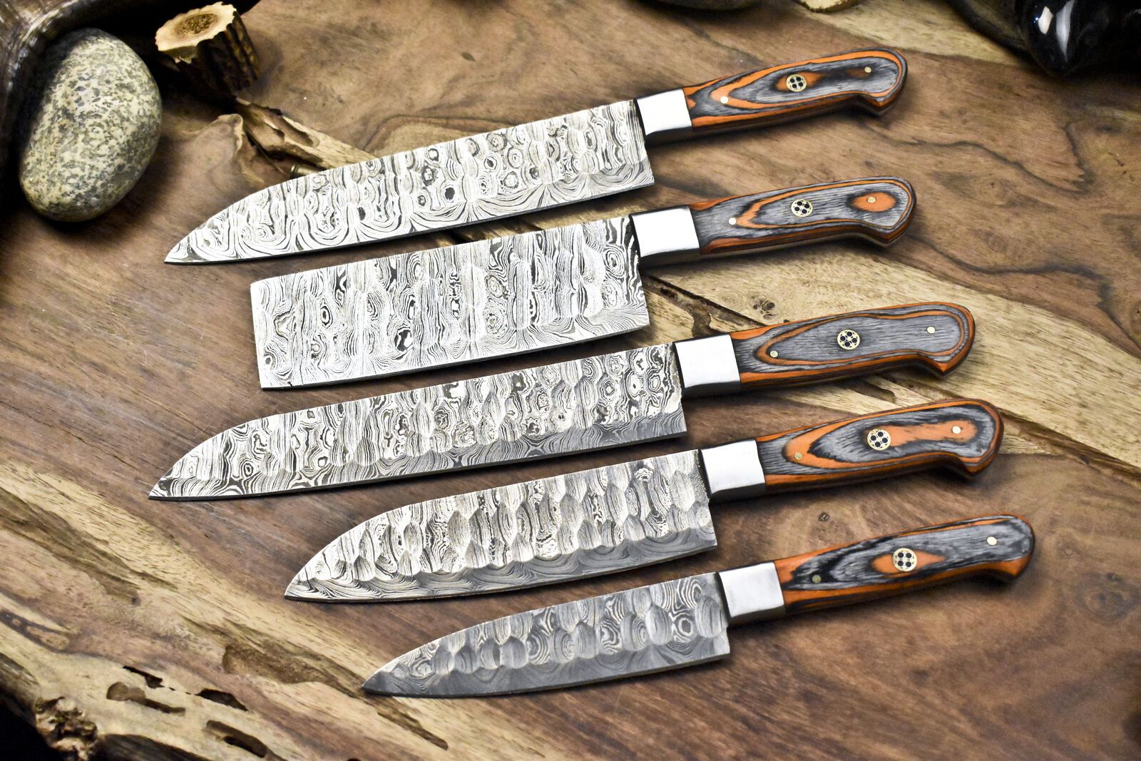 Hand Forged Chef Knife Set – 5 PCS Twist Damascus Steel with Hardwood Handle