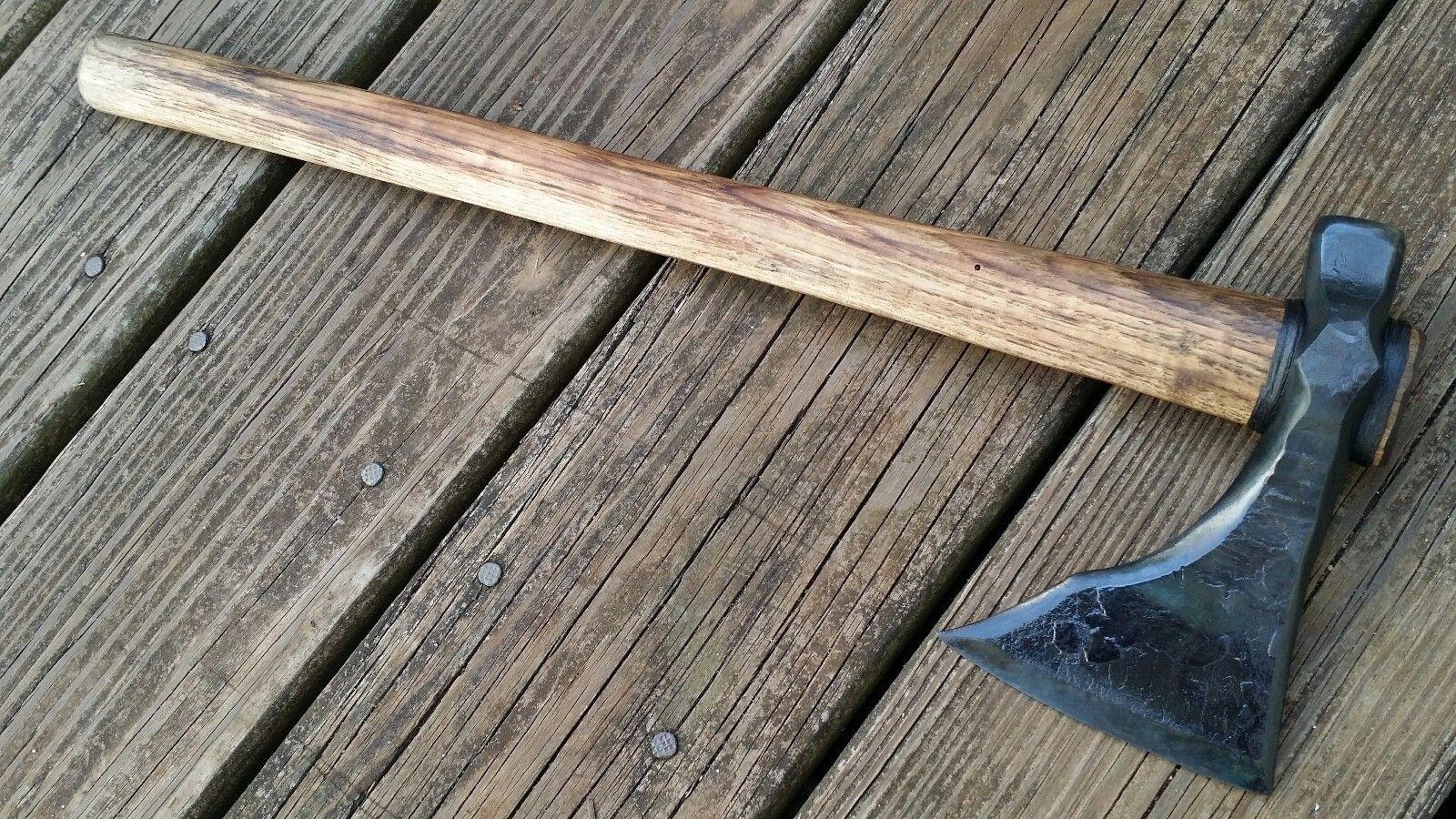 Step into the Viking spirit with this Hand-Forged Combat Spike Skull Crusher Tomahawk, crafted for tactical use, bushcraft, and collectors of historical weaponry. Forged from 4140 chrome-moly steel, the tomahawk head has been normalized, hardened, and tempered for exceptional durability and sharpness. Its 5" cutting edge paired with a spike design ensures maximum versatility for chopping, piercing, or survival scenarios.The ergonomically designed flame-colored hickory handle, treated with boiled linseed oil, measures 19" in total length with a 2 3/4" bit handle and a 6 1/2" hole diameter for optimal control. The 2 1/2" tail-to-handle distance provides balanced momentum, making it comfortable and effective for one-handed or two-handed use. Weighing 1 lb. 7 oz, this tomahawk strikes the perfect balance between functionality and portability.