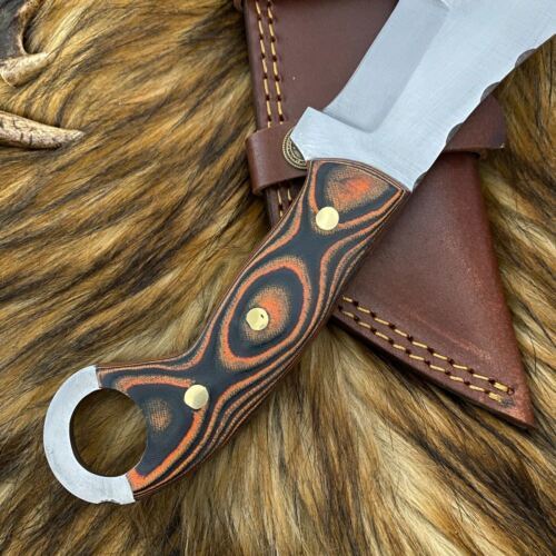 This knife features a 5-inch full tang handle, crafted from high-quality natural hardwood, designed for a firm, ambidextrous grip. The balance between the blade and handle provides superior control for skinning, carving, and combat applications. Each knife is handmade in Pakistan with no CNC machinery, giving every piece its own unique character.