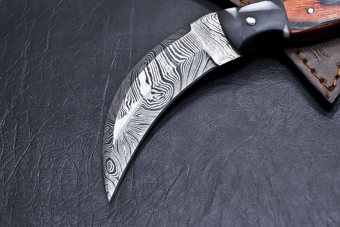 - Premium damascus steel karambit with strong full tang design
