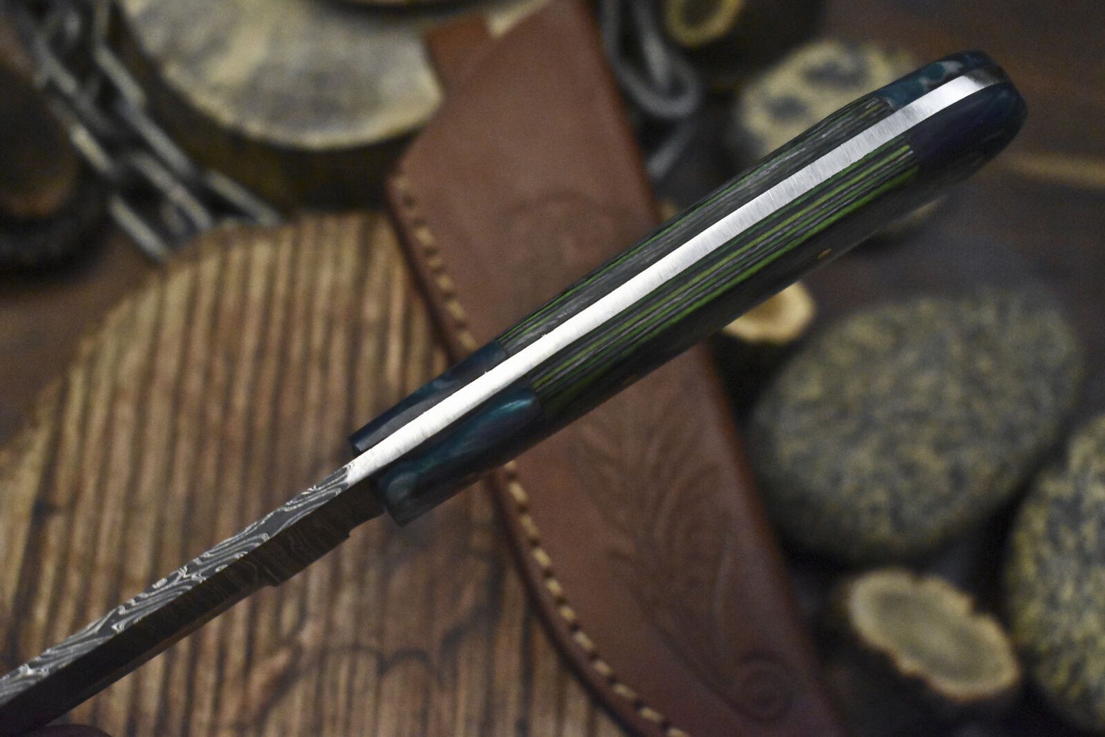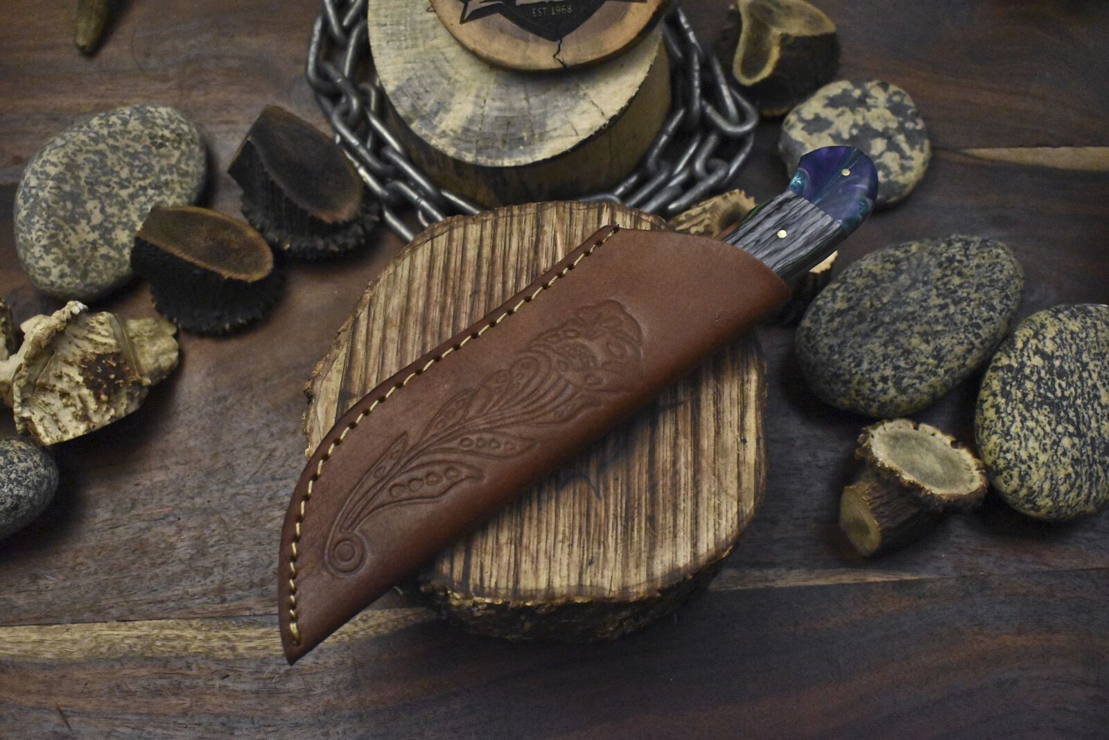 This is more than just a tool—it’s a collectible, a gift-worthy masterpiece, and a reliable companion for serious outdoorsmen. Whether you're looking for a damascus acid etched fixed skinner knife or a damascus deer horn skinner knife alternative, this piece offers high performance and artistic design. Comes with a premium hand-tooled leather sheath.