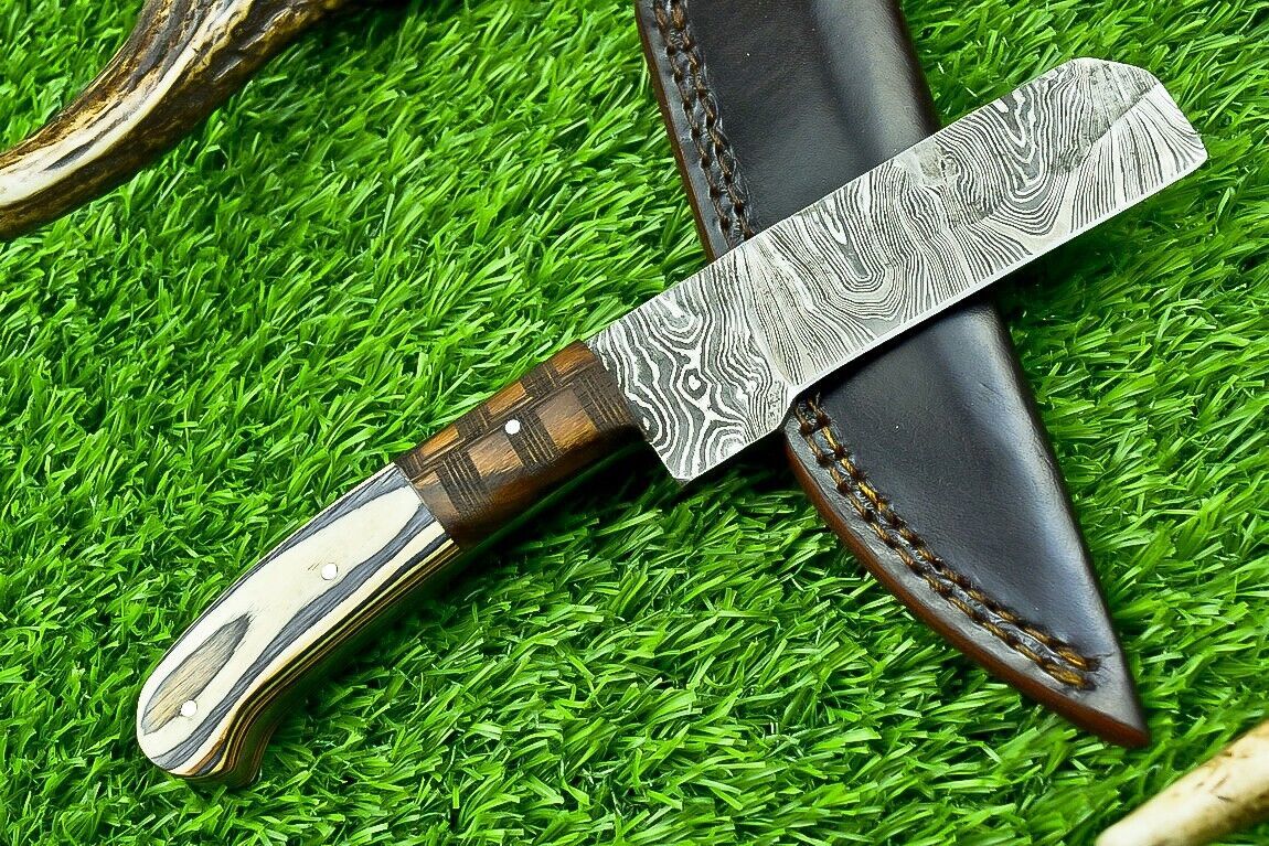 The blade is crafted from genuine Damascus steel, carefully forged using 1095 high carbon steel and 15N20 steel.This solid construction makes it suitable for those searching for the best bull cutter knife, reliable calf cutter knives, or a trusted best hunting knife for field use.
