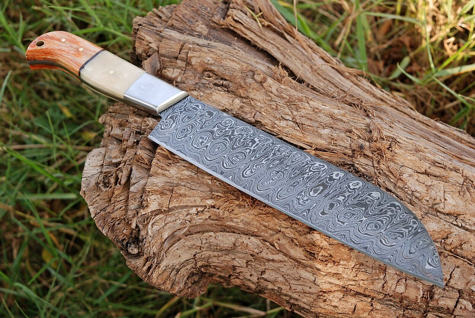 Hand Forged Damascus Steel Chef Knife with Buffalo Bone