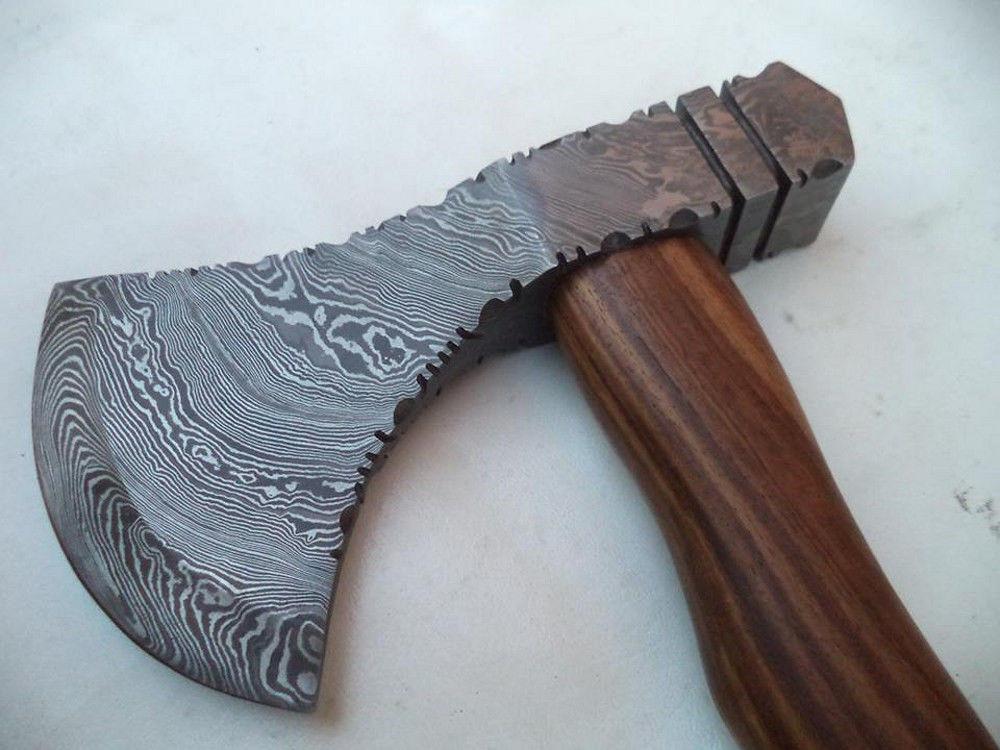 Hand Forged Damascus Steel Hatchet Tomahawk Viking Axe with Rose Wood Handle