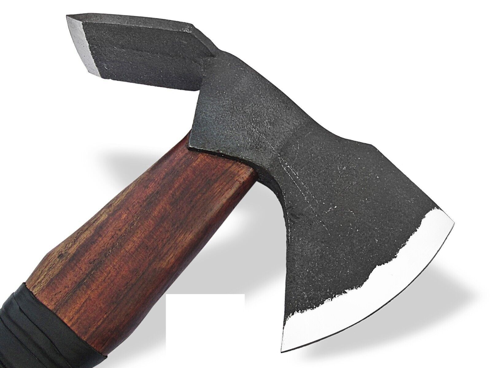 Hand Forged High Carbon Steel Viking Axe 18 Inch Shovel Head Hatchet with Rosewood Handle and Leather Sheath