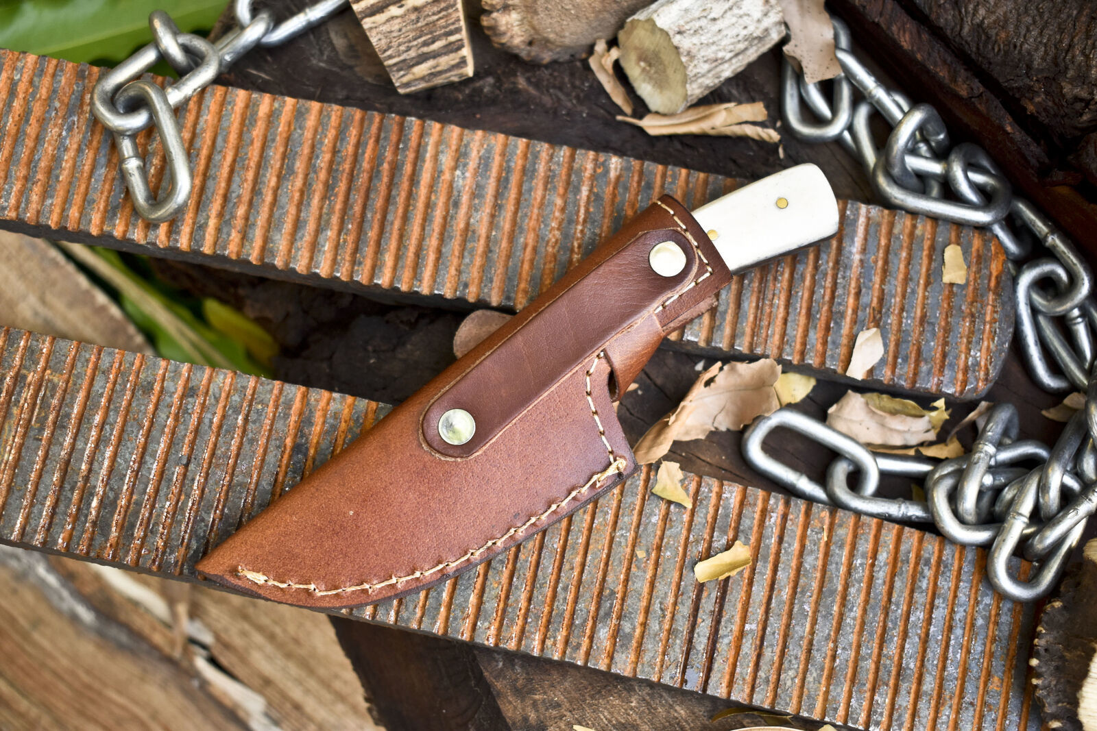 Each knife is 100% handmade, ensuring no two pieces are identical, with unique Damascus patterns and natural handle variations. A high-quality hand-stitched leather sheath is included, providing safe storage and easy portability.