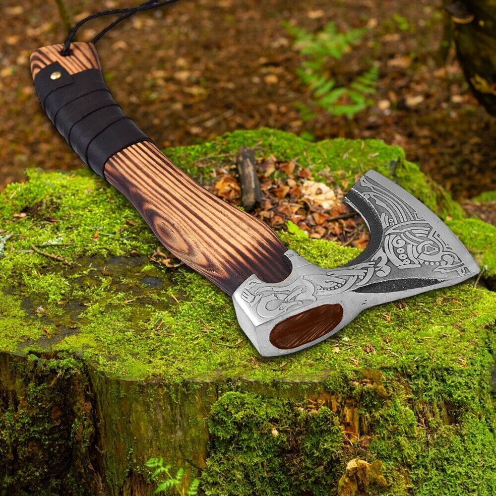 The ergonomic wooden handle provides a strong grip, crafted to balance comfort with durability, making it a versatile tool for camping, hunting, fishing, or outdoor survival. This hand forged viking axe is more than just a weapon—it is a symbol of courage and heritage, inspired by the axes carried by vikings battle axe wielders like Ragnar himself.