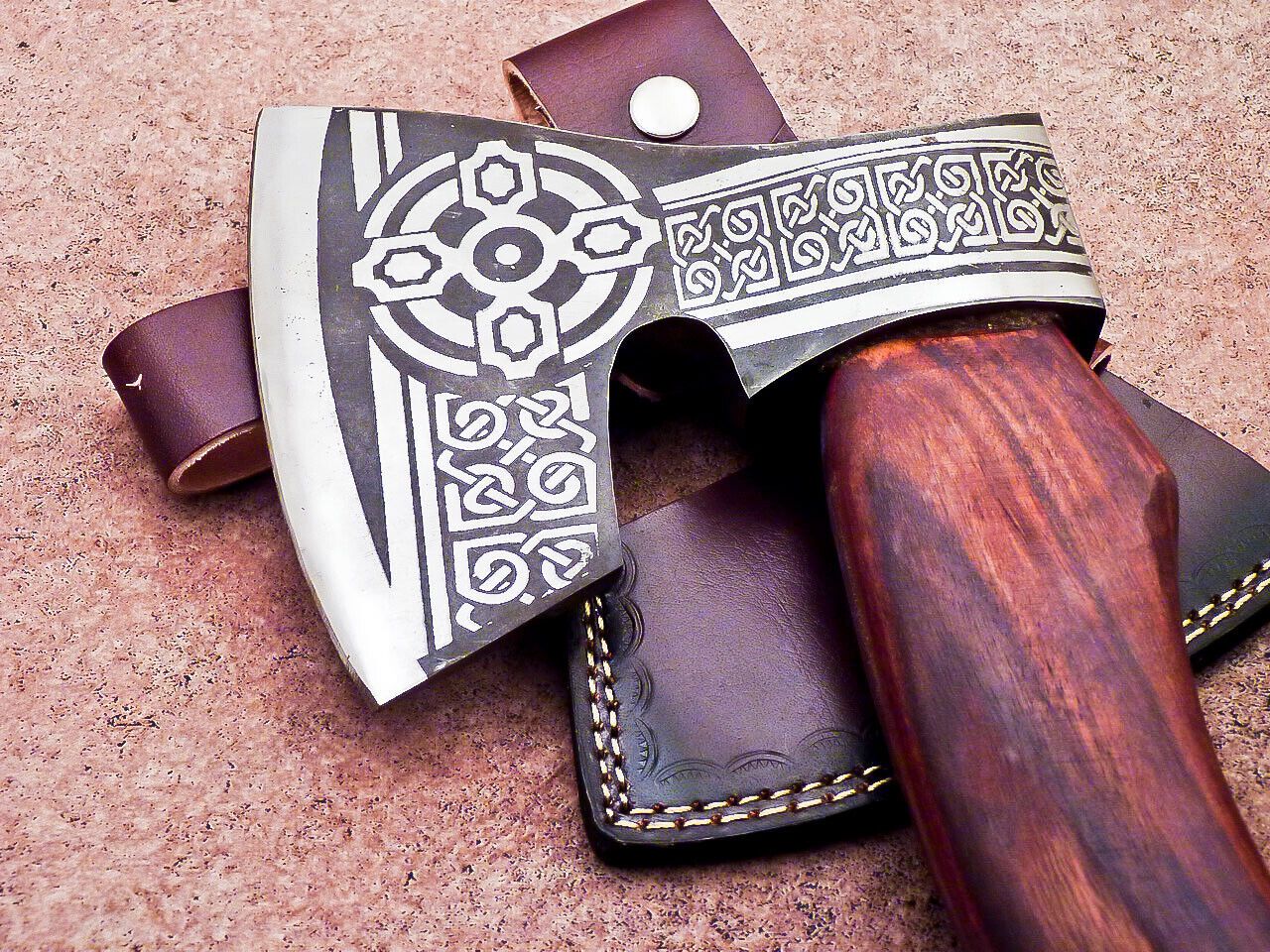 This hand forged Viking bearded axe is a true piece of craftsmanship, designed for both functional use and collectible appeal. Forged from high carbon steel, the axe head provides strength, durability, and an authentic Norse look. The 5-inch sharpened cutting edge and 6-inch wide axe head deliver excellent chopping and cutting ability, while the 18-inch overall length ensures balance and versatility for outdoor tasks.