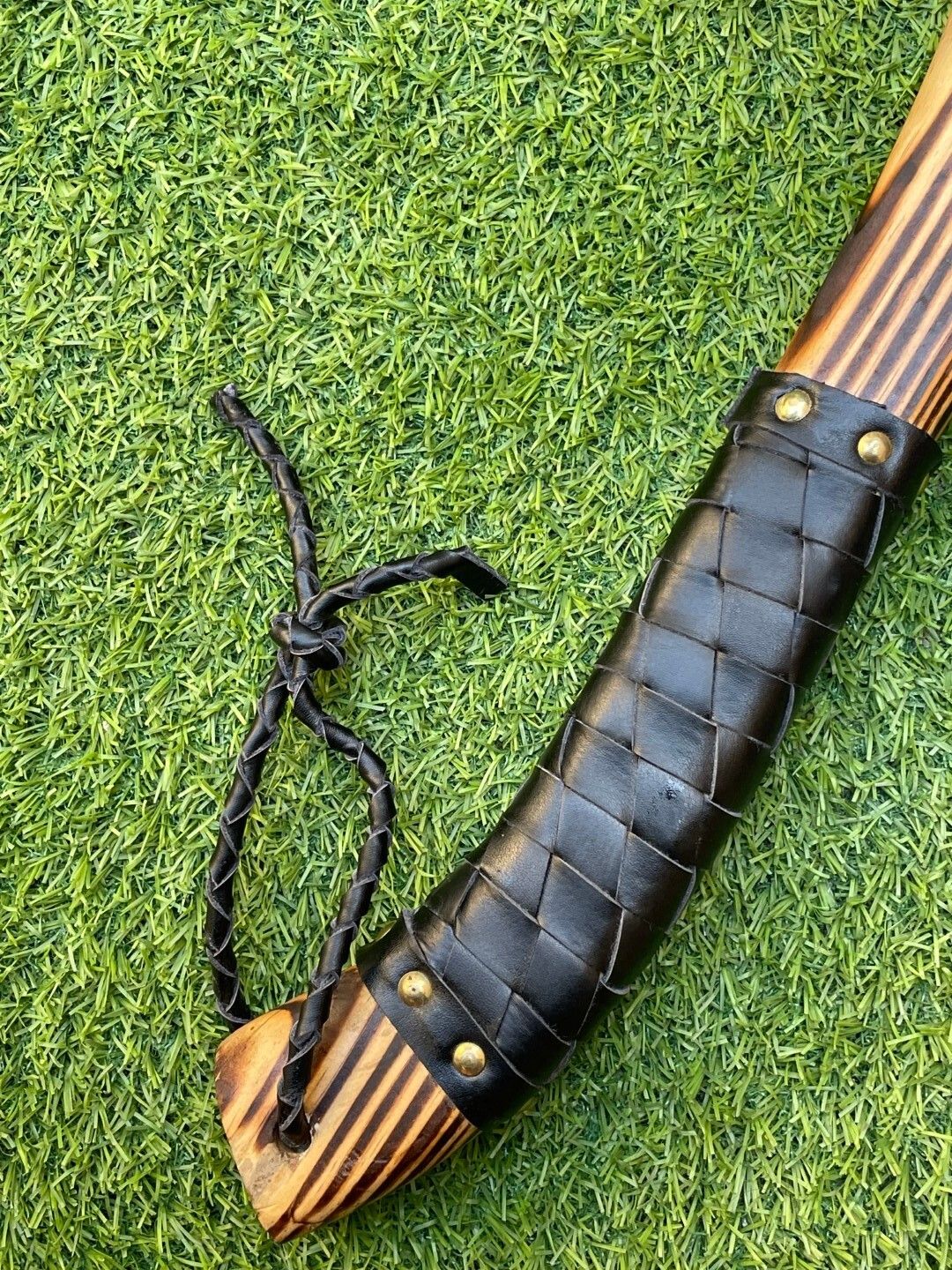 Experience the power and craftsmanship of the Vikings with this Hand-Forged Viking Hatchet. Made from premium carbon steel and measuring 19 inches in overall length, this axe is designed for both functionality and display. Its half, rat-tail, and full tang construction provides unmatched strength and balance, making it ideal for throwing, camping, bushcraft, or tactical use.