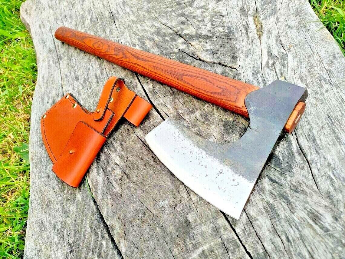 Hand Made Carbon Steel Viking Axe – Hunting Camping Outdoor Tool with Leather Sheath
