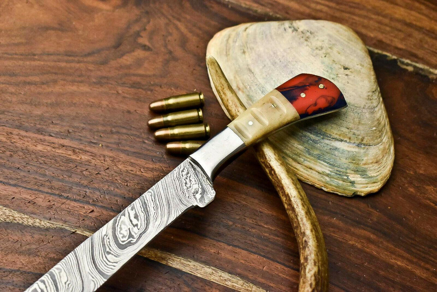 Every knife is 100% handmade without any CNC machining, making each piece unique with subtle variations in pattern and character. The full tang design provides perfect balance and durability for cutting, slicing, and chopping tasks. Whether for professional use or as a collectible kitchen tool, this Damascus chef knife combines beauty, strength, and precision in one exceptional piece.