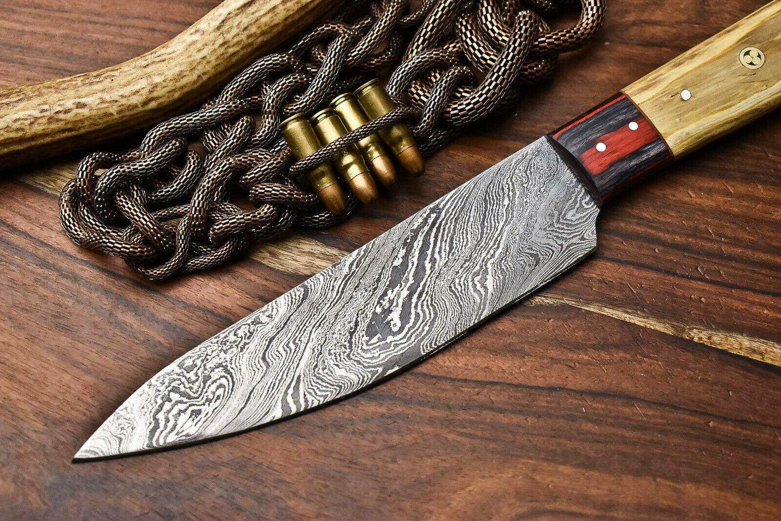 Hand Made Damascus Steel Chef Kitchen Knife Full Tang with Hardwood Handle