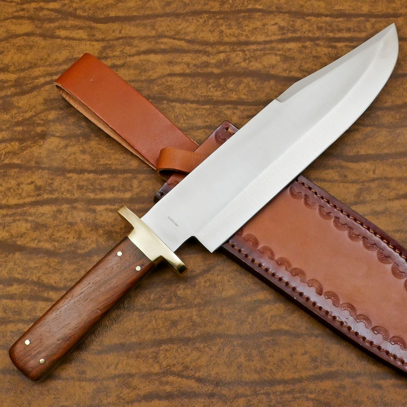 Discover the perfect blend of craftsmanship and performance with this handcrafted D2 steel Bowie hunting and camping knife. Featuring a 13-inch full tang blade forged from premium D2 tool steel, this knife delivers exceptional hardness, sharpness, and long-lasting edge retention, making it ideal for outdoor adventures. Its full tang construction ensures superior strength and balance, providing reliable performance for chopping, skinning, and other demanding tasks. The ergonomic handle offers a comfortable, secure grip, while a sturdy steel guard enhances safety during rigorous use. Each knife is meticulously handmade, giving it unique character and artisanal quality that distinguishes it from mass-produced alternatives. Rugged yet refined, this Bowie knife is perfect for hunters, campers, survival enthusiasts, and collectors who value both functionality and style. Its sharp edge and durable construction make it a dependable companion in the wild, while the handcrafted design ensures it stands out as a collectible piece. Combining strength, practicality, and aesthetic appeal, this D2 steel Bowie hunting and camping knife is an essential tool for anyone seeking a high-quality, versatile outdoor blade.