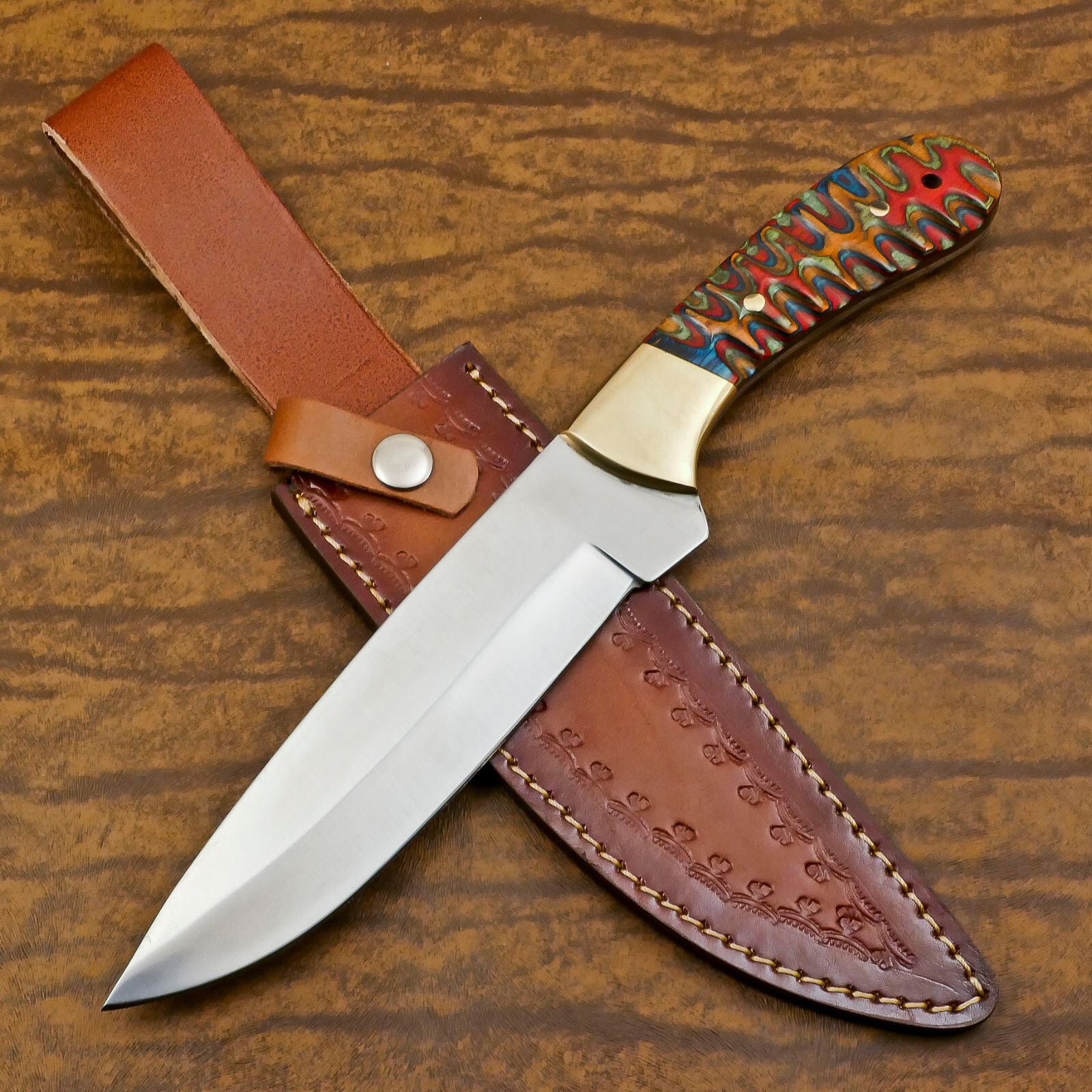 Handcrafted D2 Steel Full Tang Bowie Knife | Hunting & Camping with Pakka Wood Handle