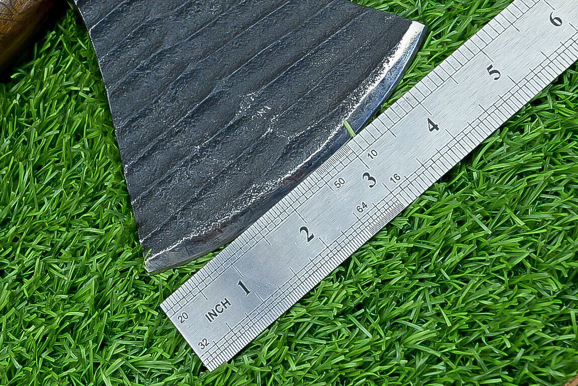 This Handcrafted Viking Tomahawk Axe is a masterfully forged tool combining functionality and authentic Viking style. The premium carbon steel blade offers exceptional sharpness and durability, making it ideal for chopping, throwing, hunting, or outdoor activities. The bearded design provides an extended cutting edge while maintaining excellent balance for controlled handling. The handle, made from carefully selected rosewood, ensures a comfortable and secure grip, while the hand-crafted leather sheath protects the blade and allows for safe transport. With an overall length of approximately 17 inches, this Viking tomahawk is perfectly sized for practical use or as a collectible display. Maintain the blade’s performance by keeping it dry and sharpening with a diamond wet stone at a 20-degree angle.