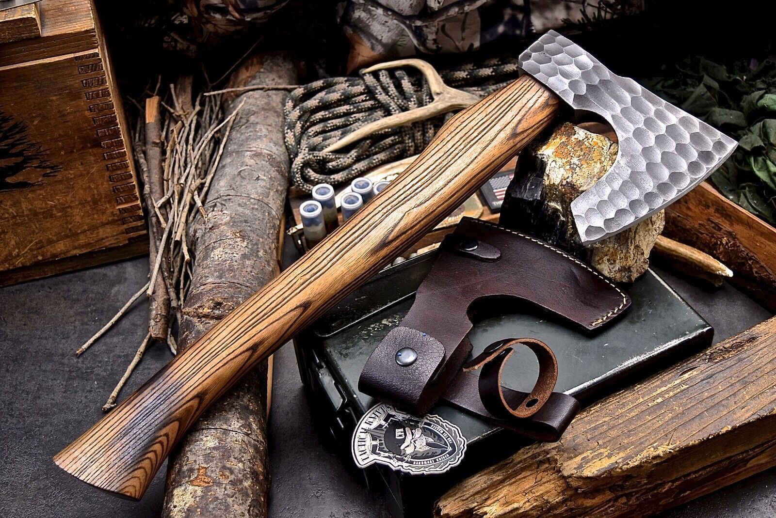 Handmade 1095 Forged Bearded Viking Axe – Camping Hatchet with Leather Sheath