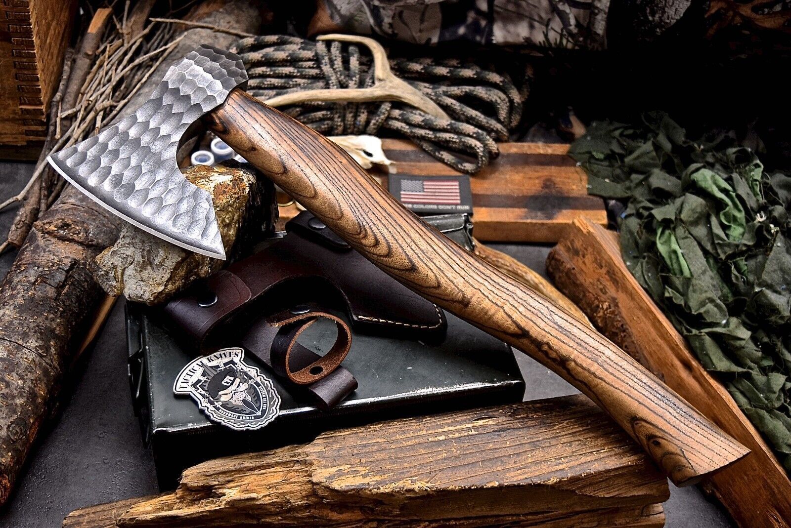 Handmade 1095 Forged Bearded Viking Axe – Camping Hatchet with Leather Sheath
