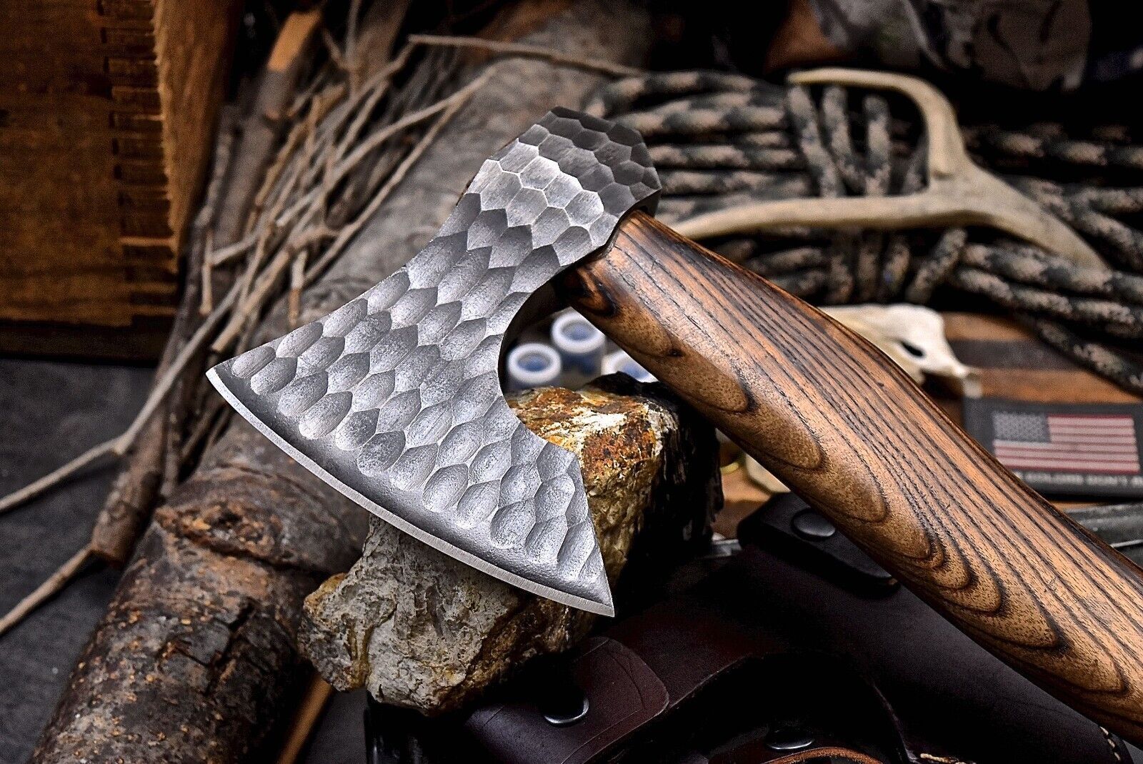 Discover the perfect blend of craftsmanship and functionality with this Handmade 1095 Forged Bearded Viking Axe. Measuring 20 inches overall, this axe features a stonewashed high-carbon 1095 steel blade hardened to 56-58 HRC, ensuring long-lasting sharpness and superior performance. The cutting edge spans 5.5 inches with a head width of 6.375 inches, while the 17.375-inch jigged comfort-grip handle provides a secure and ergonomic hold. The 7/8-inch thick spine adds strength and durability for heavy-duty use. Every axe is 100% handmade, with no CNC machining, water-jet, or pre-cut blanks, making each piece unique with distinct handcrafted characteristics. The axe comes with a premium cowhide leather sheath for safe storage and transportation. Proper maintenance is recommended: wash the blade with soap and water after use, dry completely, coat with olive oil, and store away from the sheath to prevent rust. Ideal for camping, chopping, and collectors seeking authentic Viking-inspired tools, this bearded axe combines practicality with timeless design.